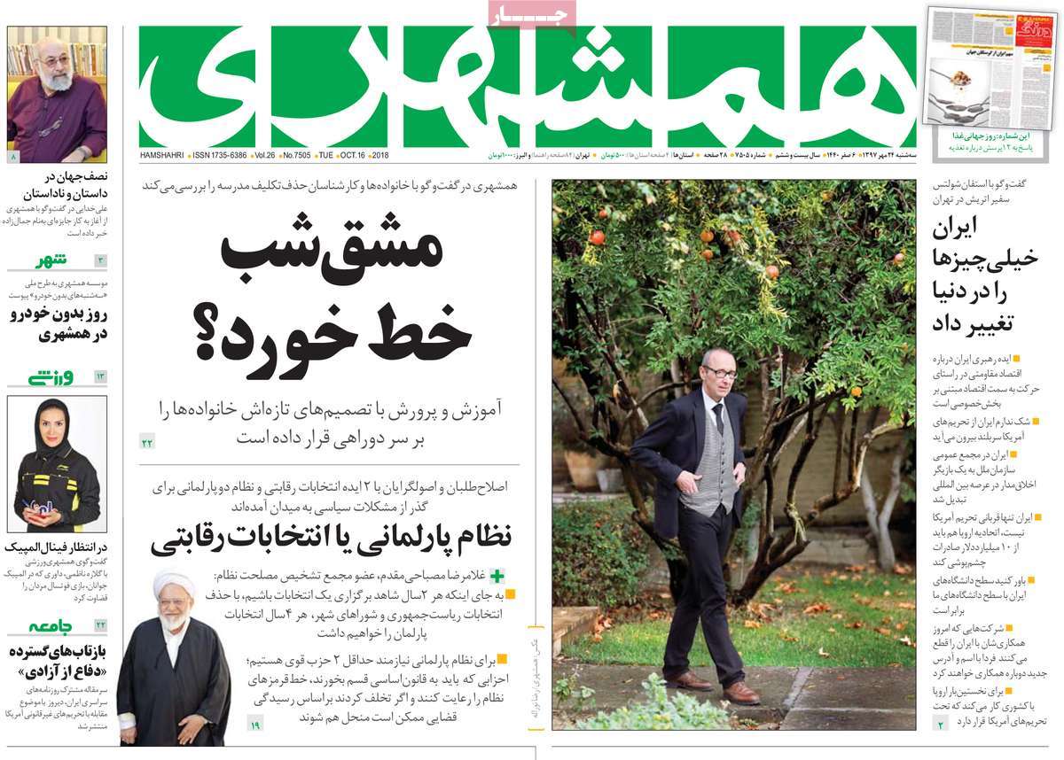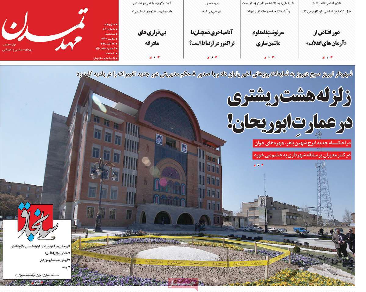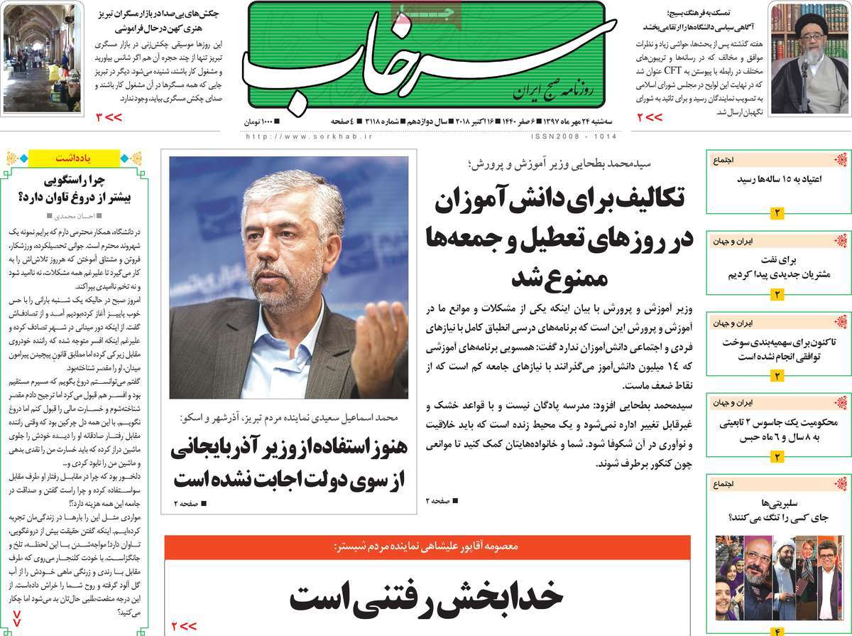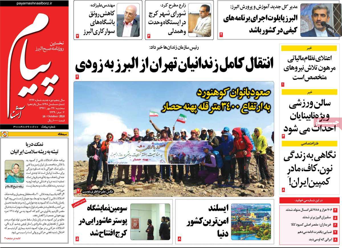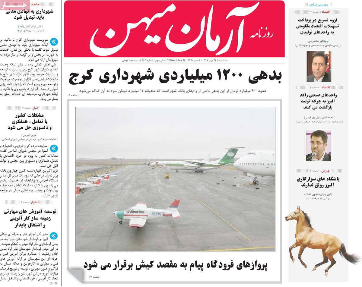 صفحه اول روزنامه های کشوری و استانی؛سه شنبه 24 مهرماه1397 /تصاویر