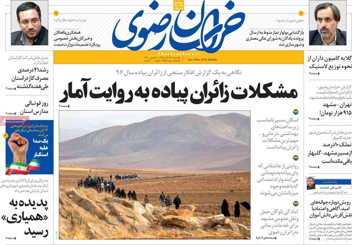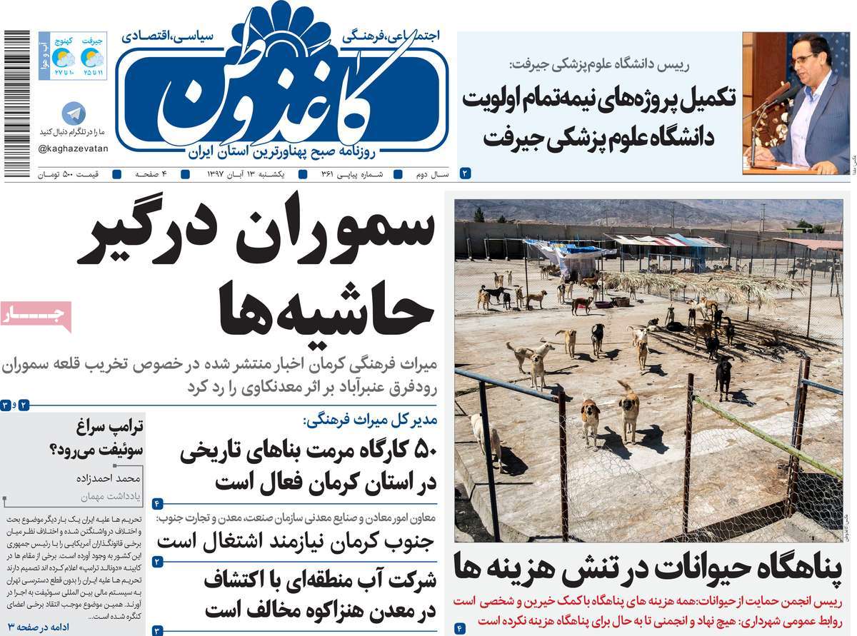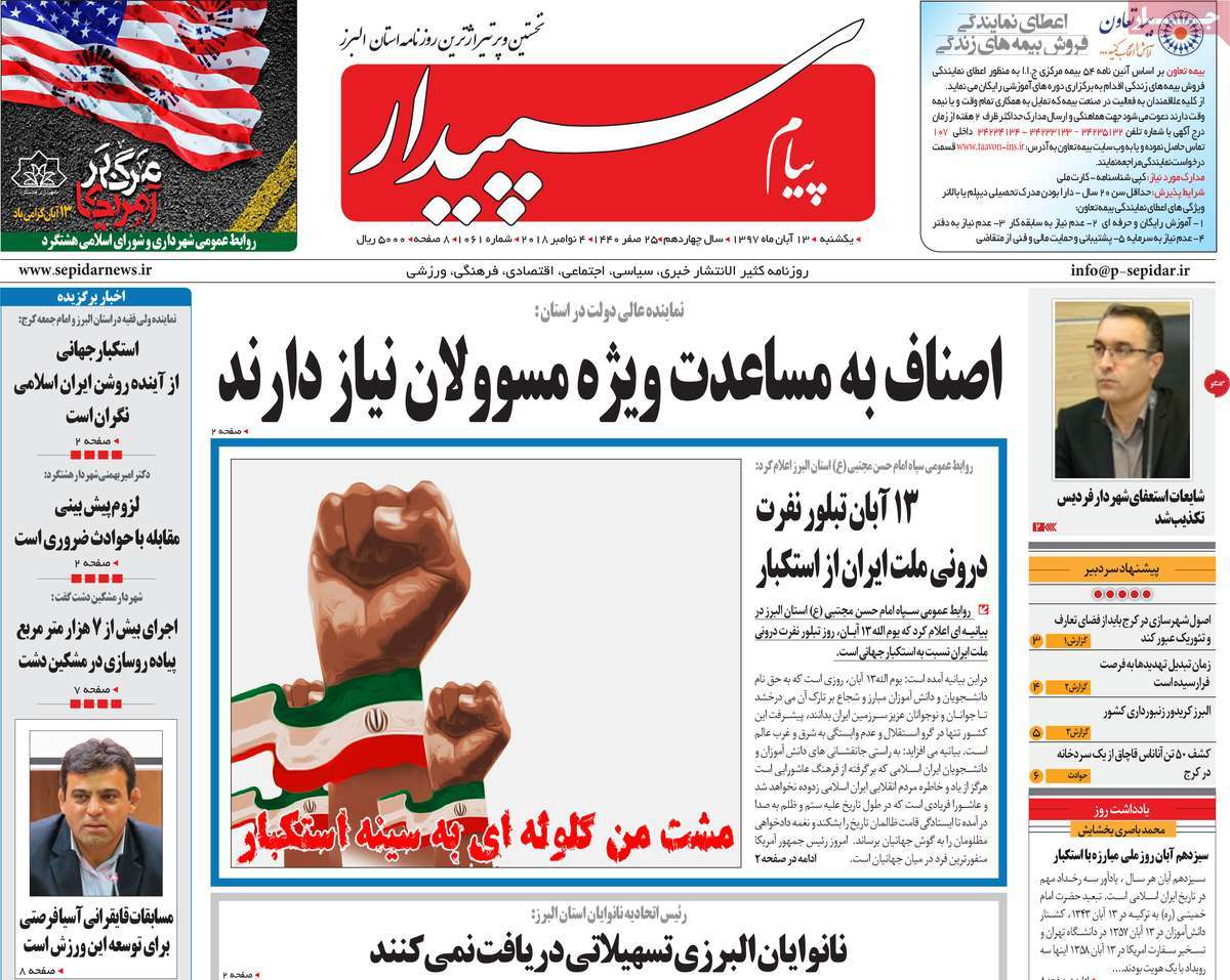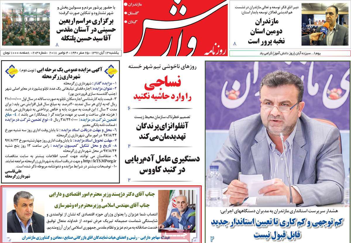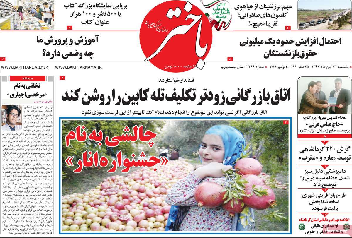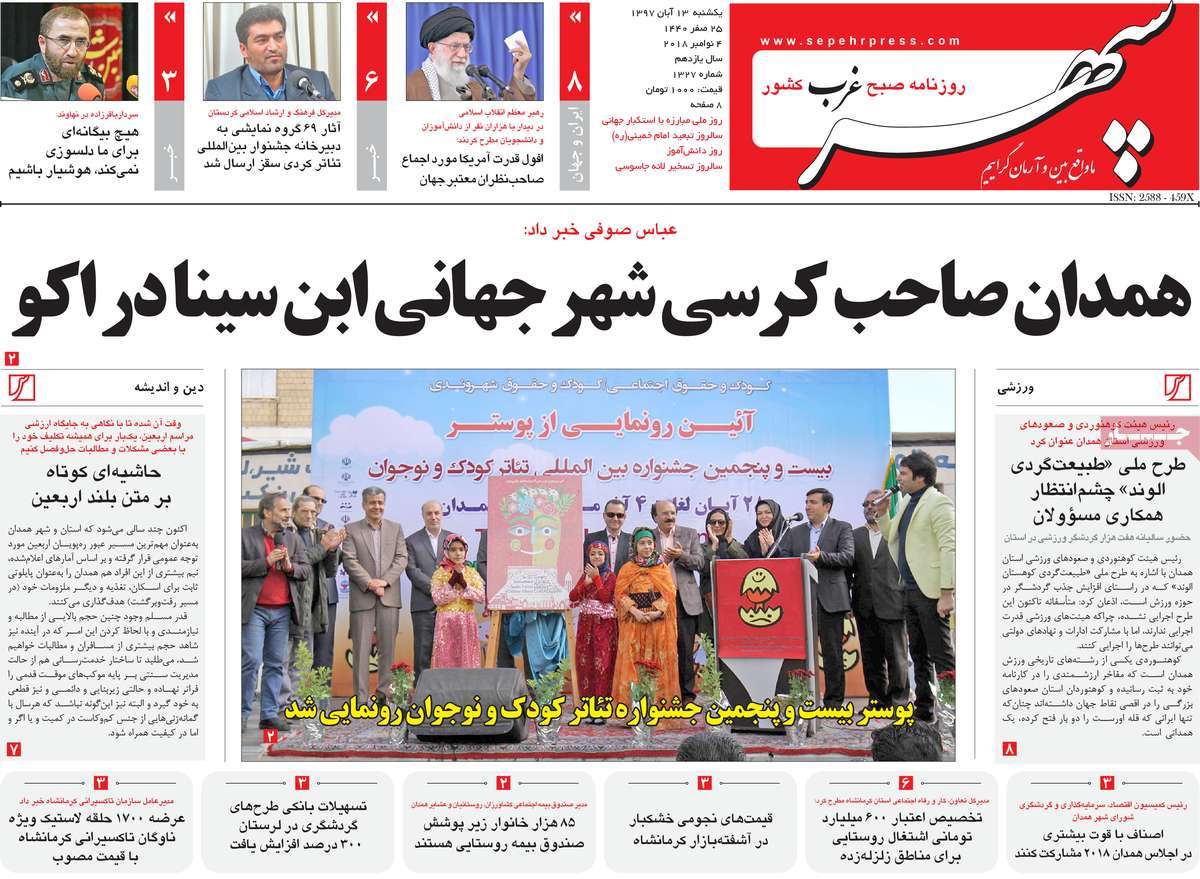 صفحه اول روزنامه های کشوری و استانی؛ یکشنبه 13 آبان ماه 1397 /تصاویر