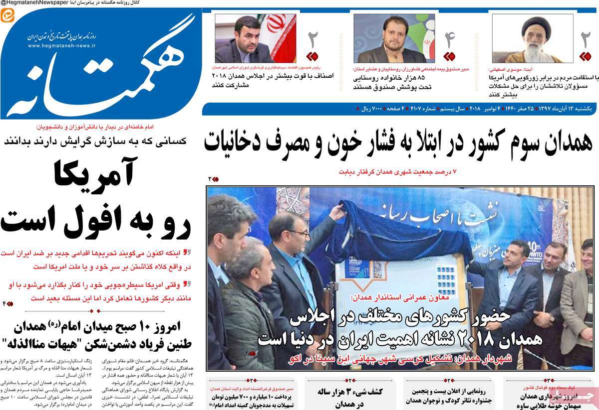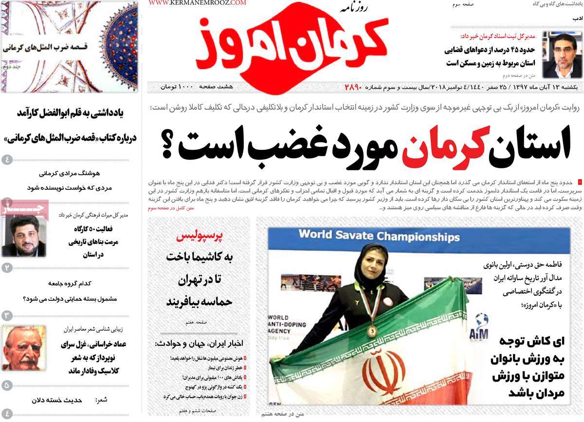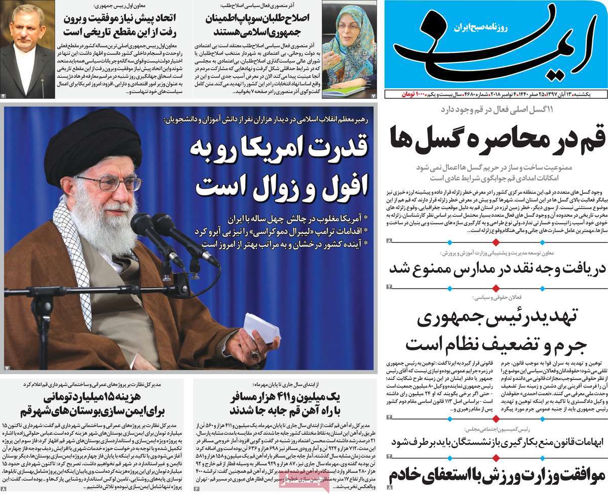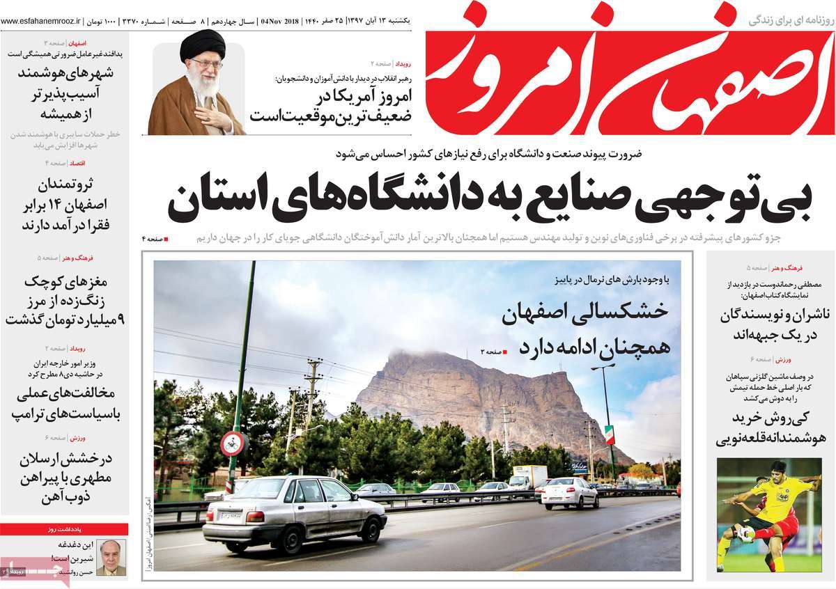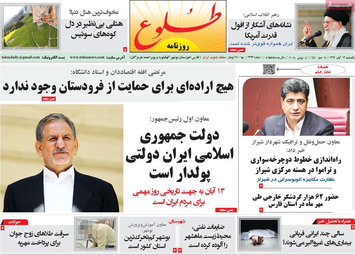 صفحه اول روزنامه های کشوری و استانی؛ یکشنبه 13 آبان ماه 1397 /تصاویر