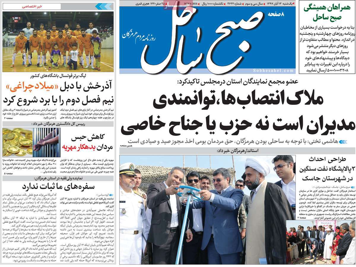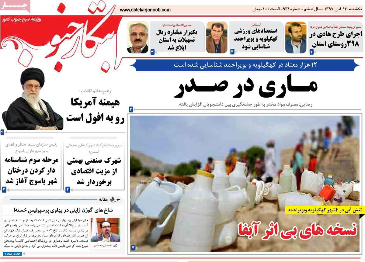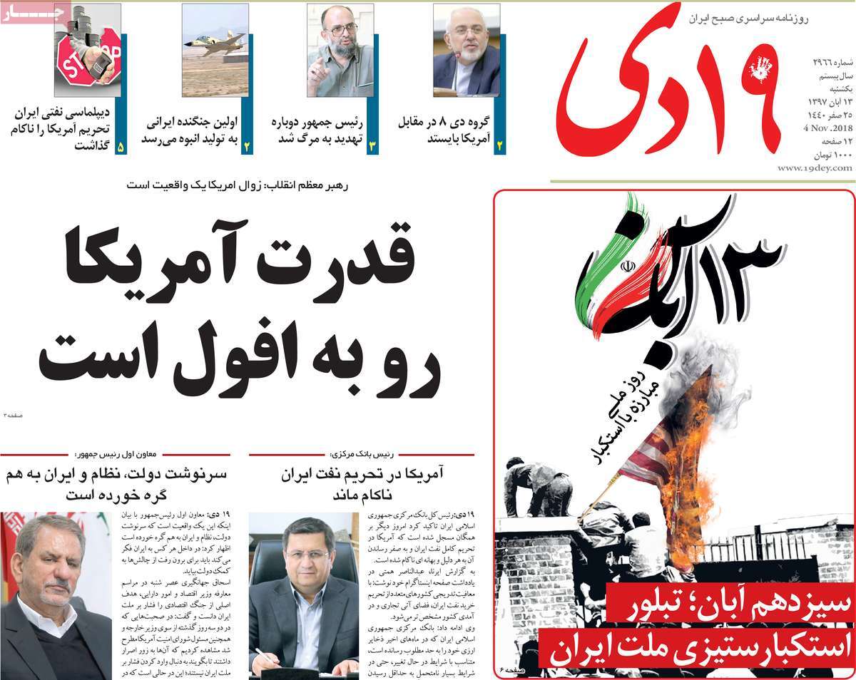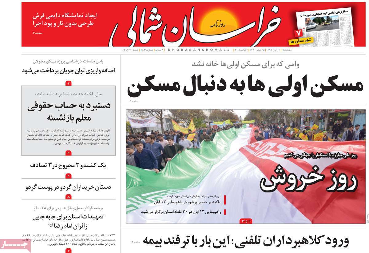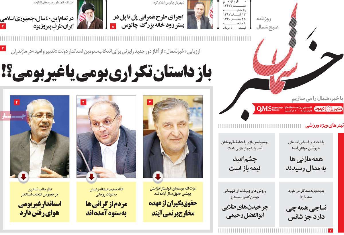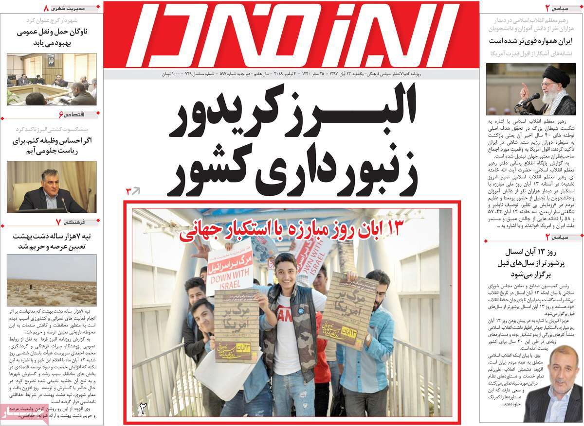 صفحه اول روزنامه های کشوری و استانی؛ یکشنبه 13 آبان ماه 1397 /تصاویر