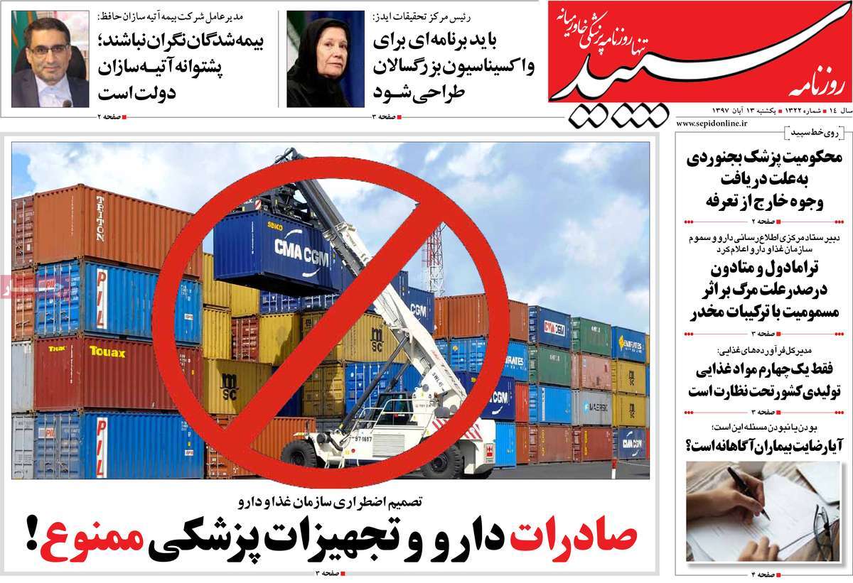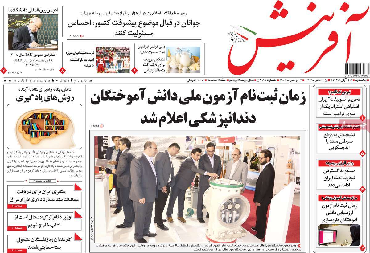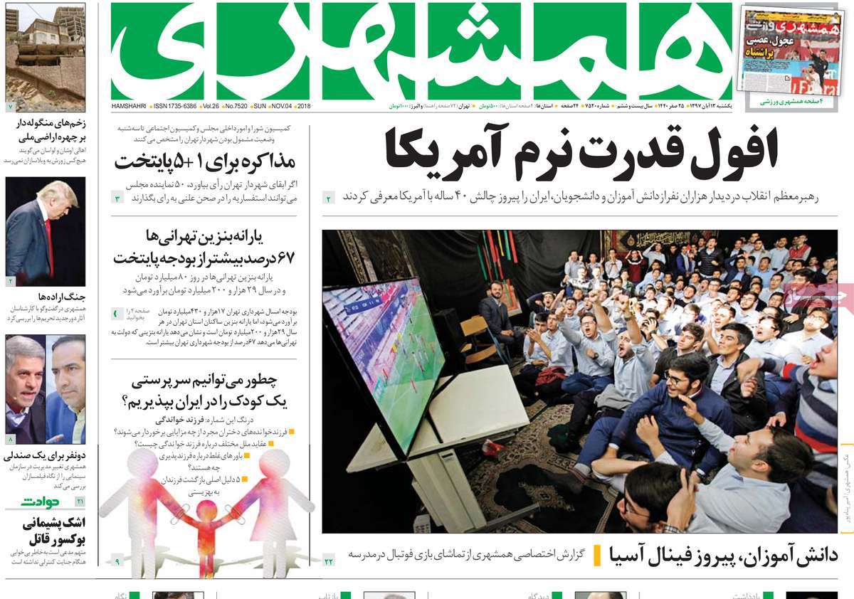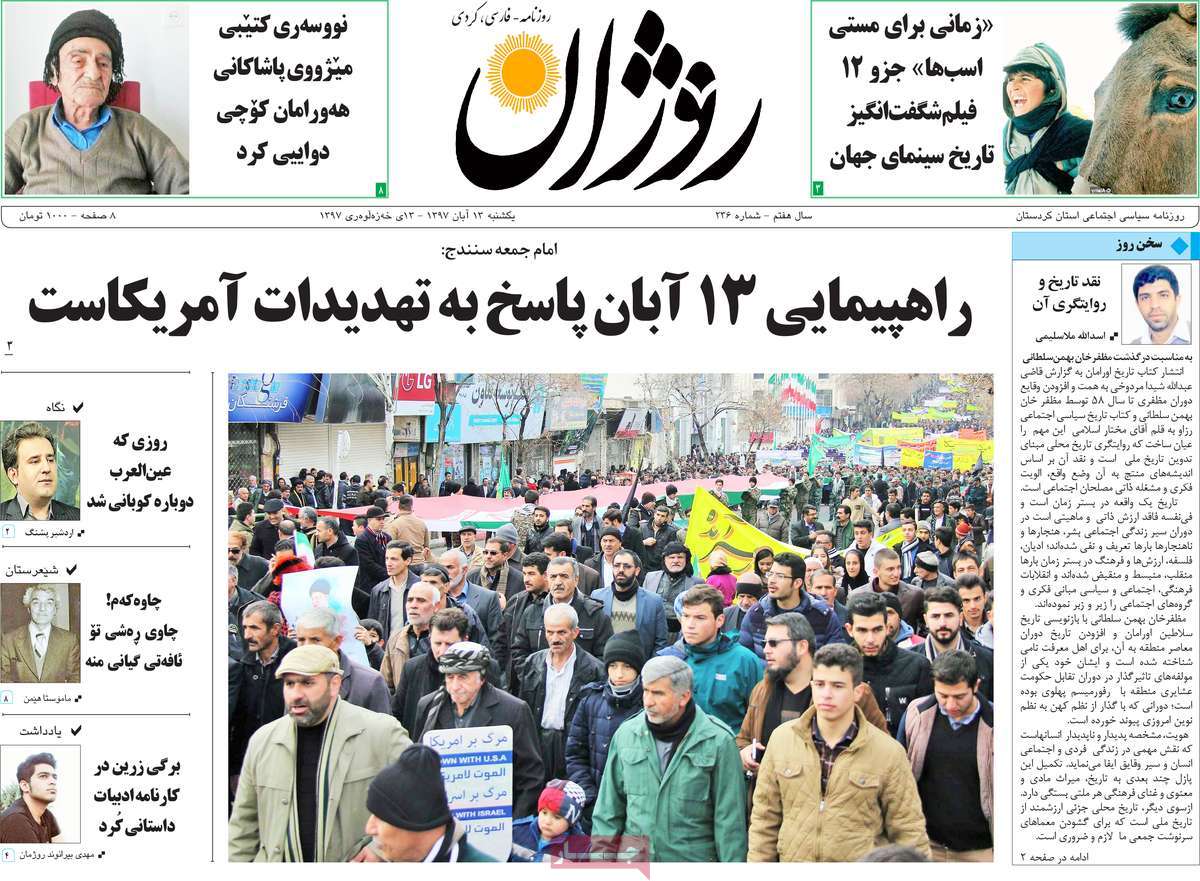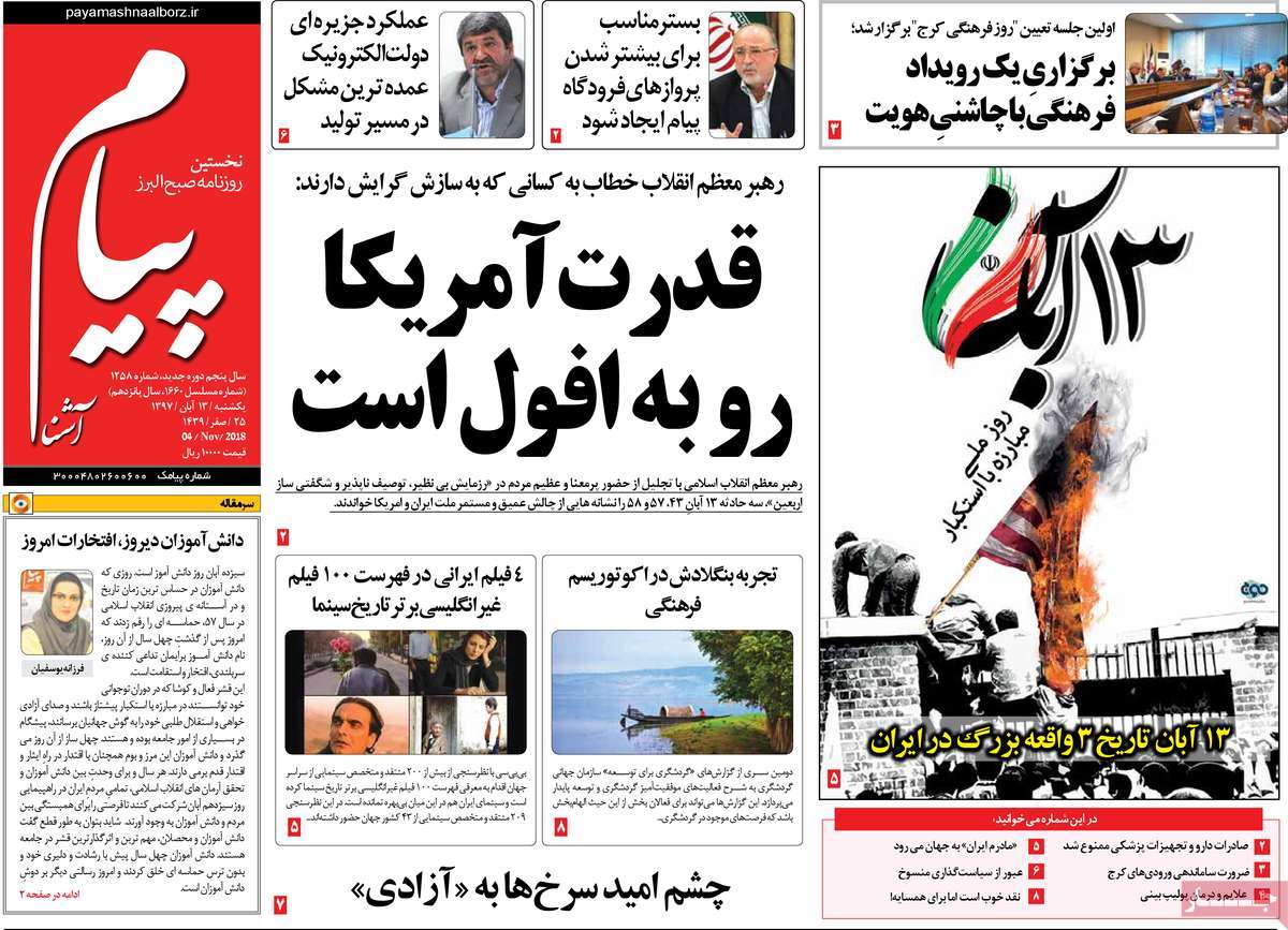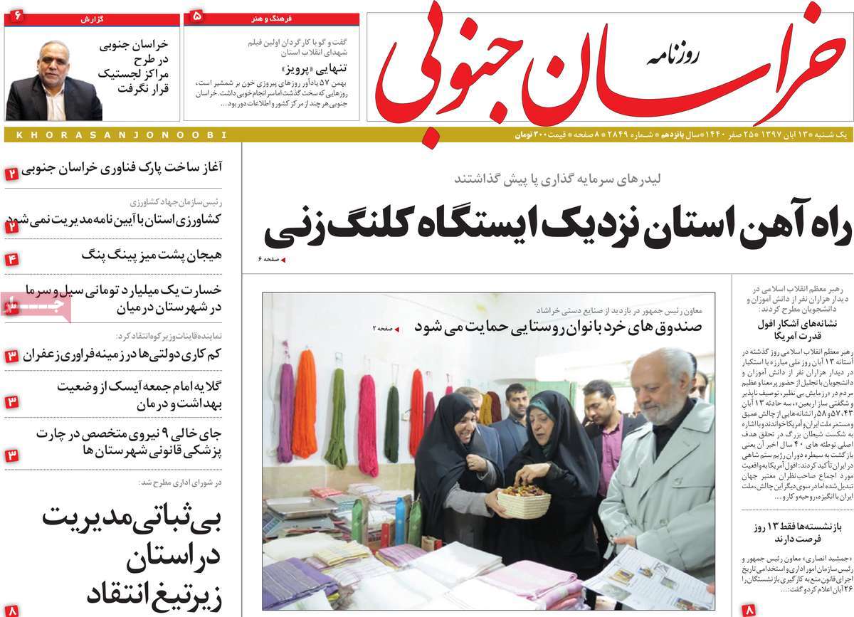 صفحه اول روزنامه های کشوری و استانی؛ یکشنبه 13 آبان ماه 1397 /تصاویر