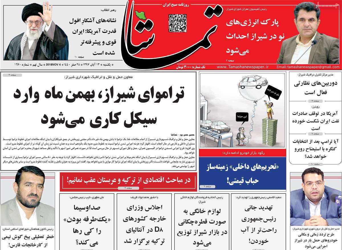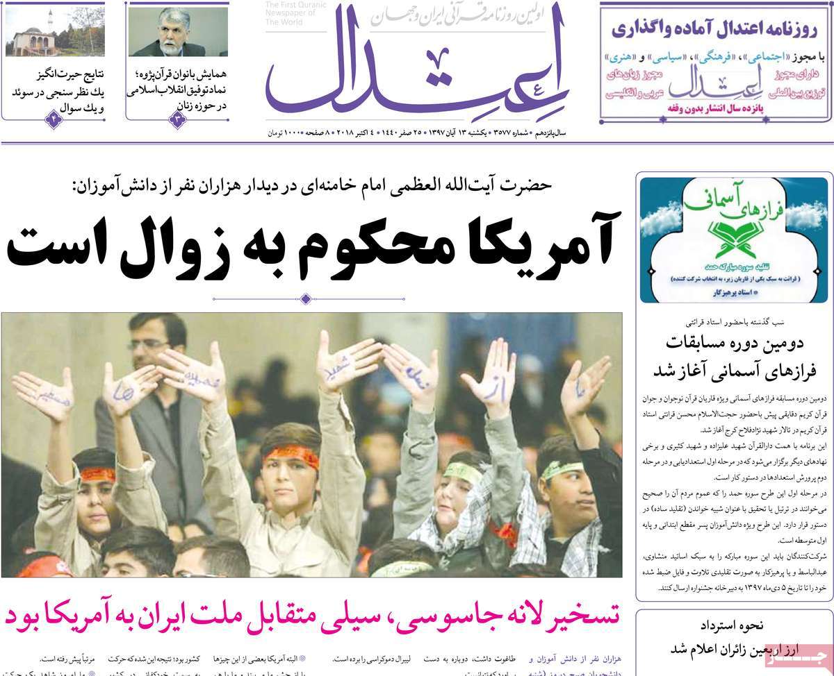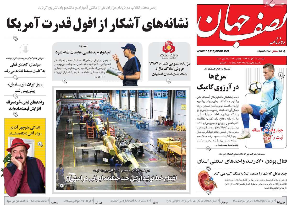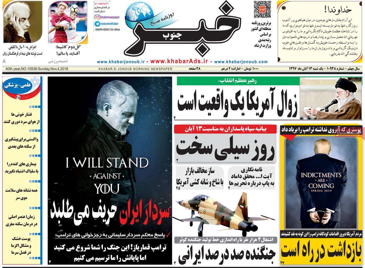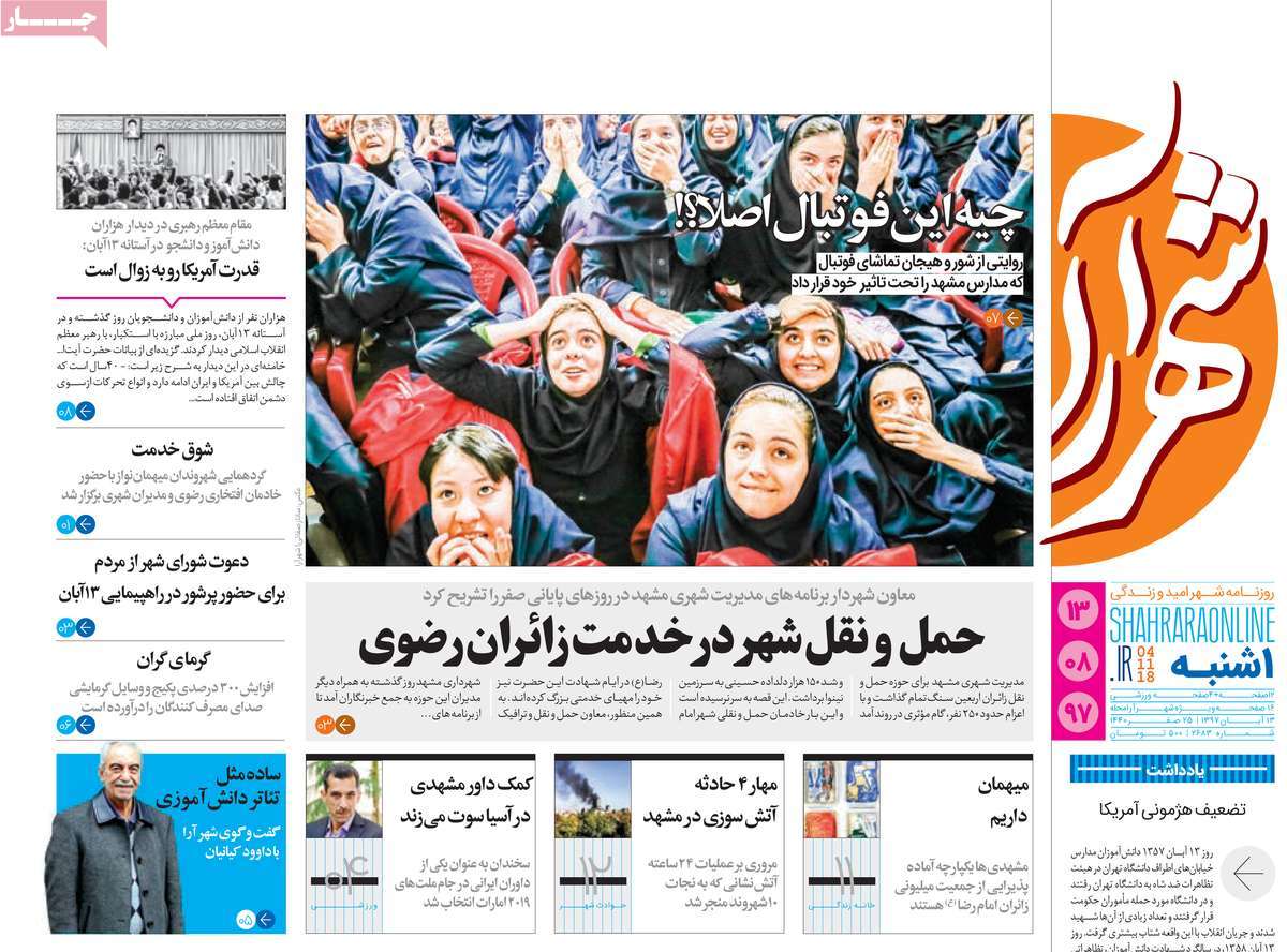 صفحه اول روزنامه های کشوری و استانی؛ یکشنبه 13 آبان ماه 1397 /تصاویر