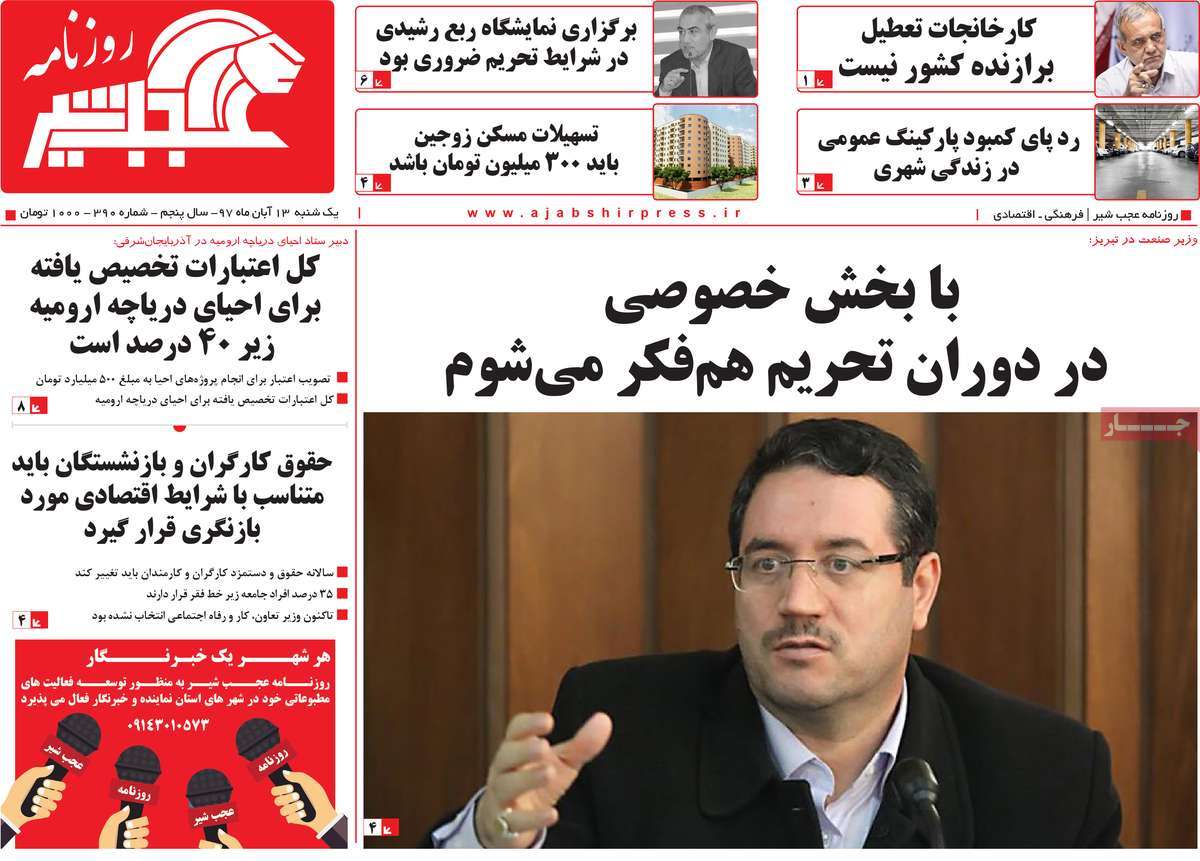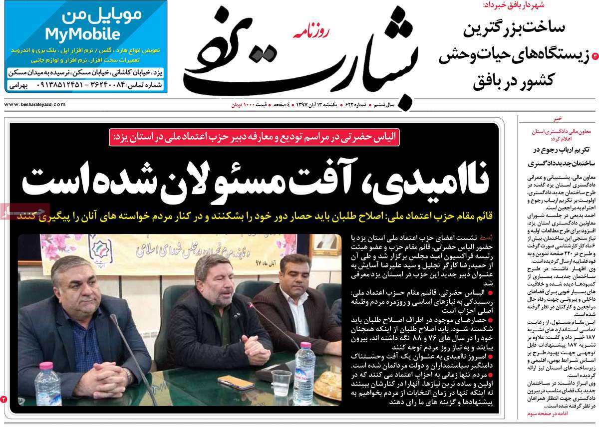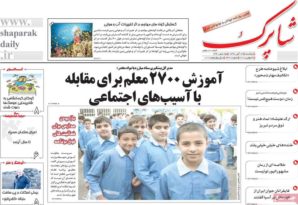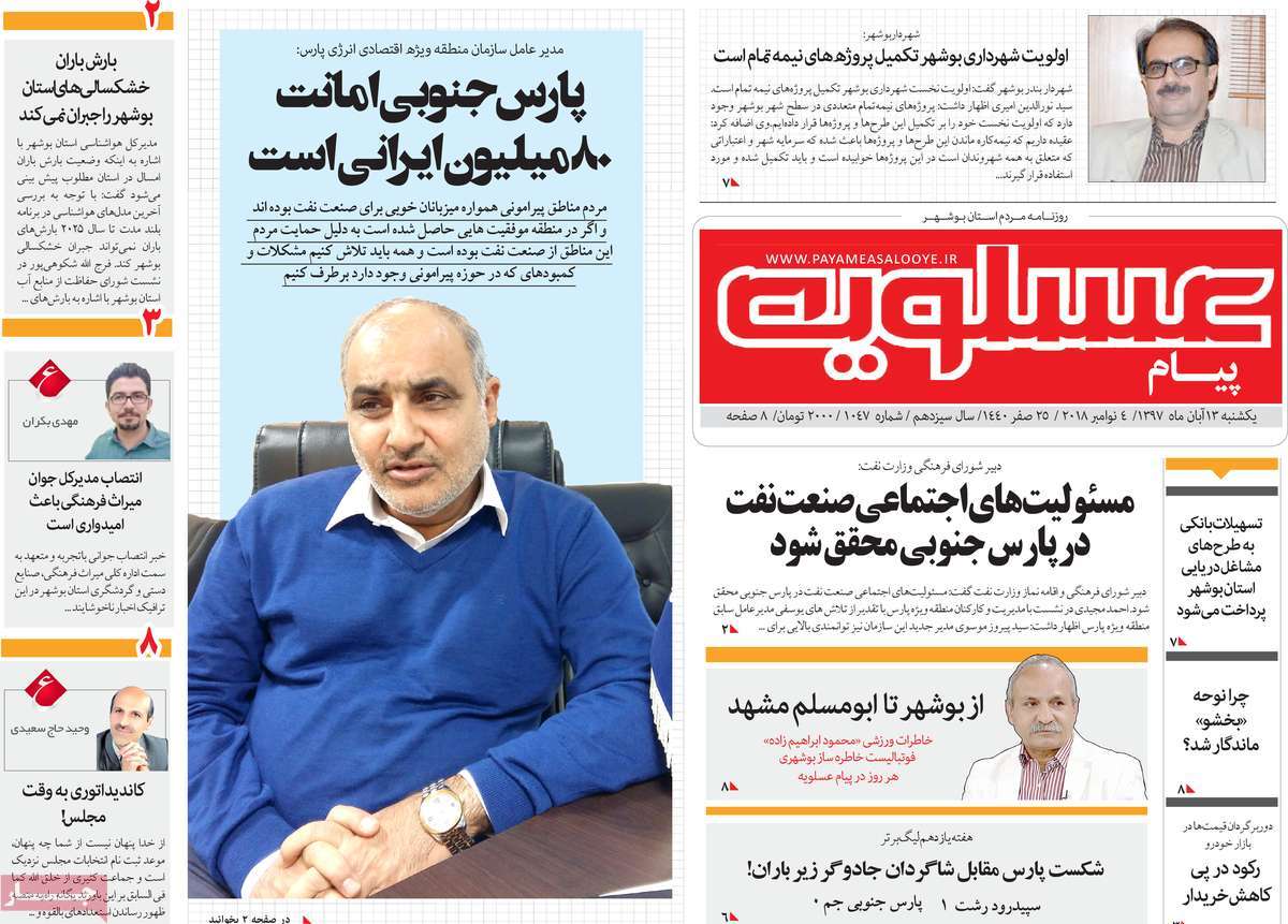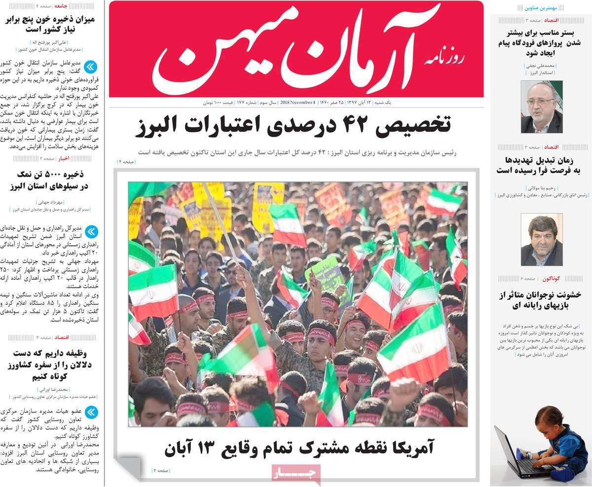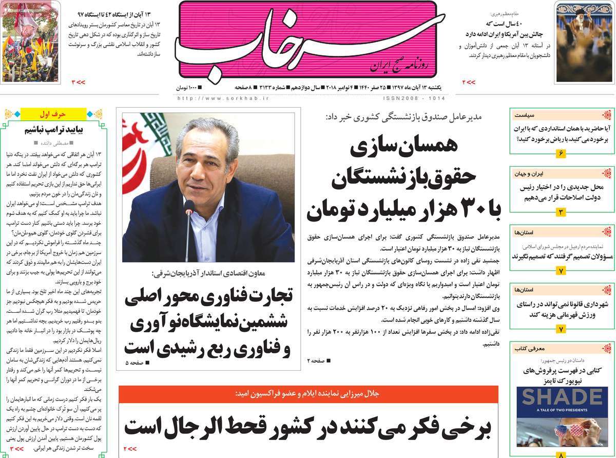 صفحه اول روزنامه های کشوری و استانی؛ یکشنبه 13 آبان ماه 1397 /تصاویر