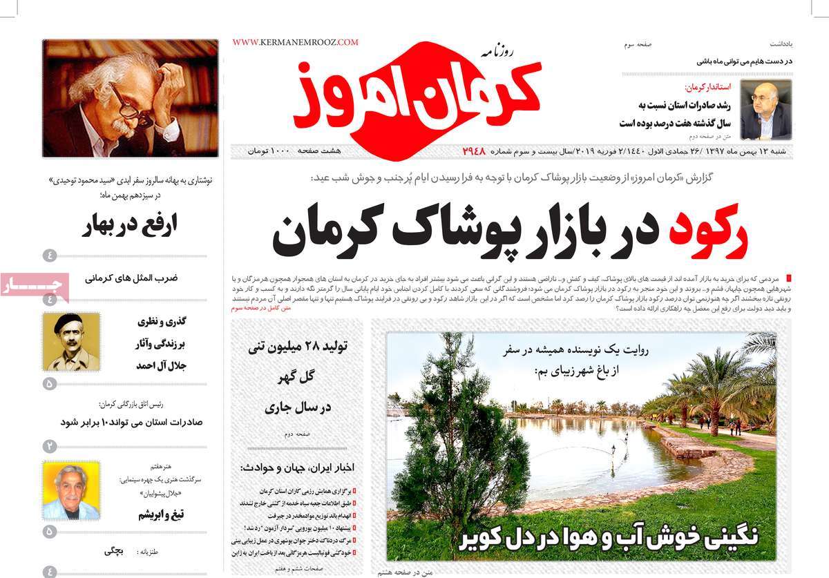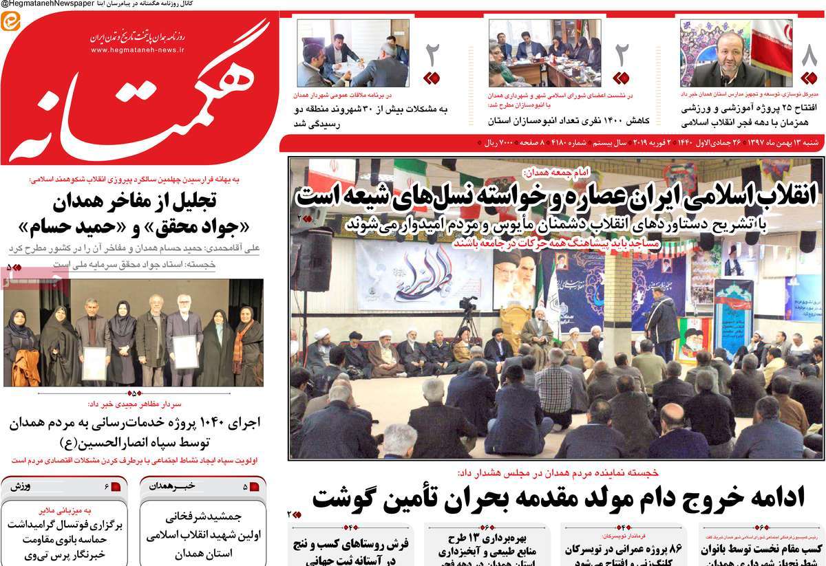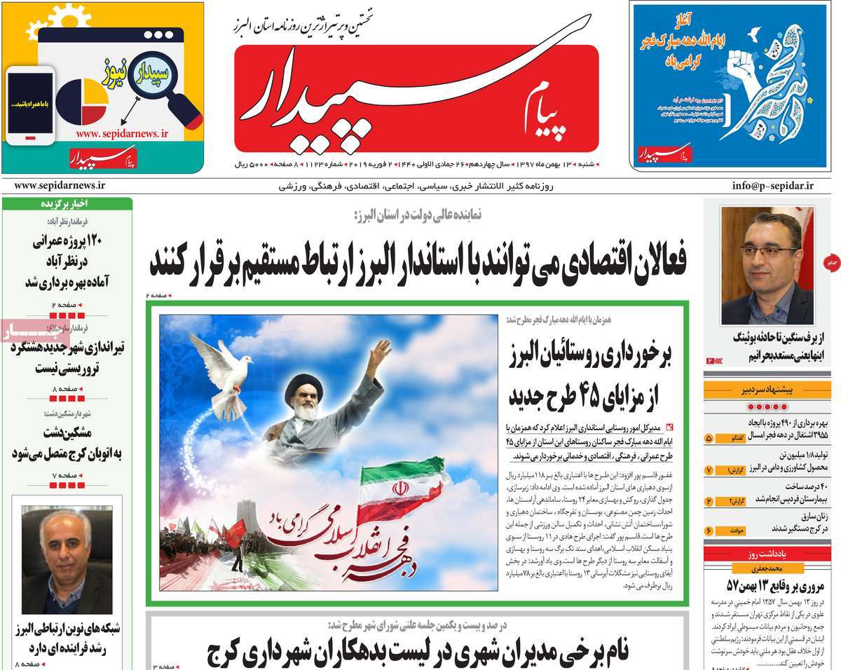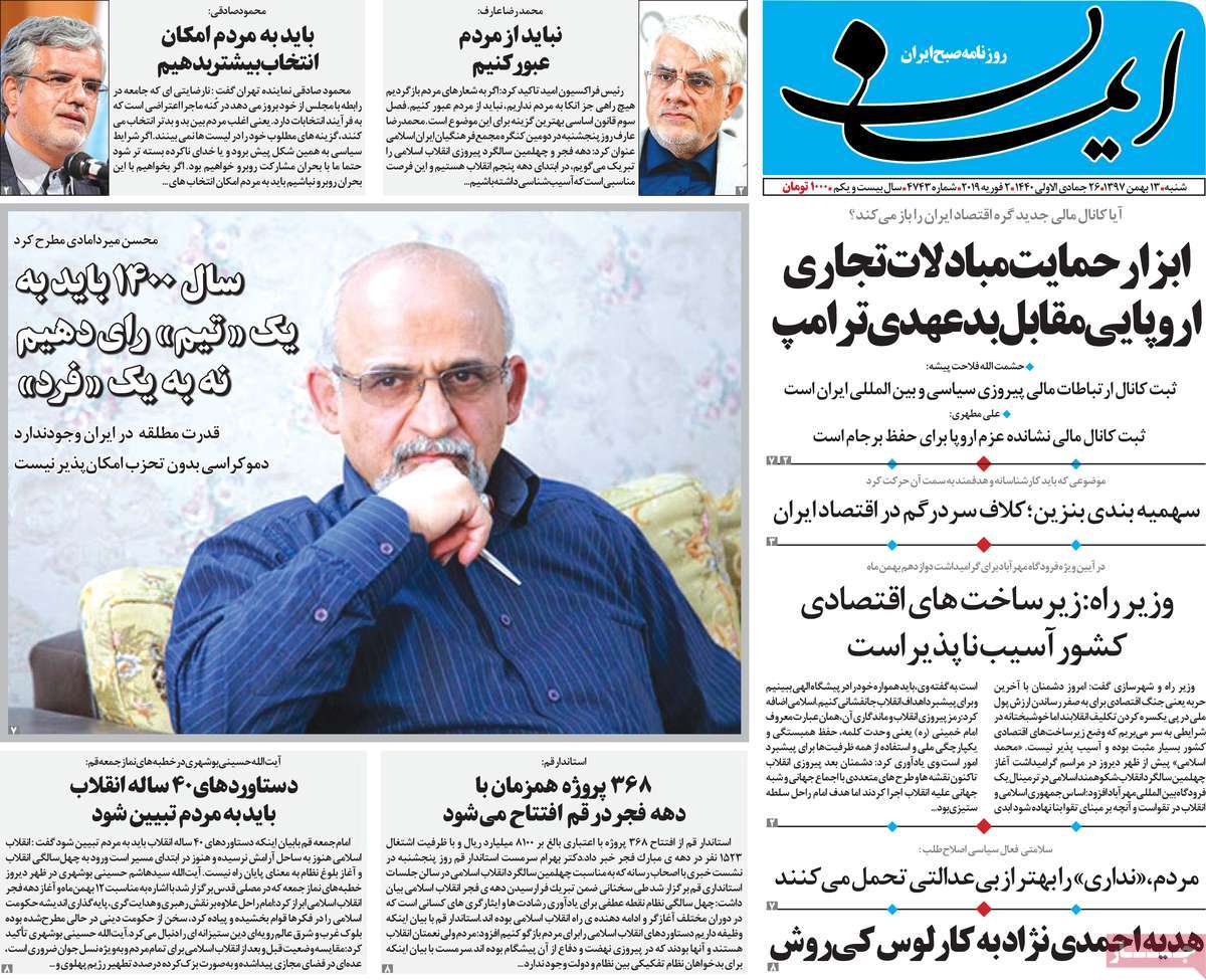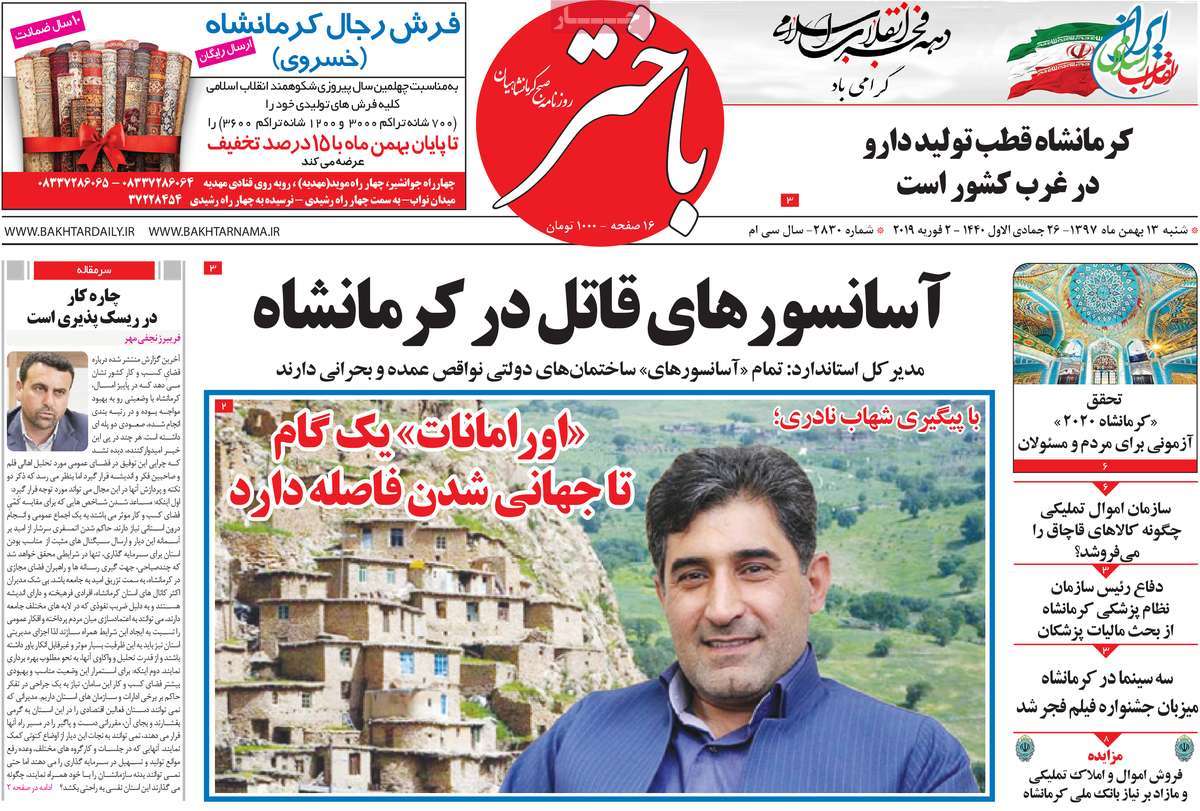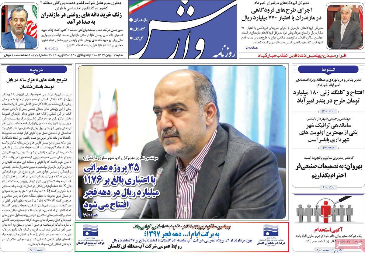 صفحه اول روزنامه های کشوری و استانی؛ شنبه 13 بهمن ماه 1397 /تصاویر