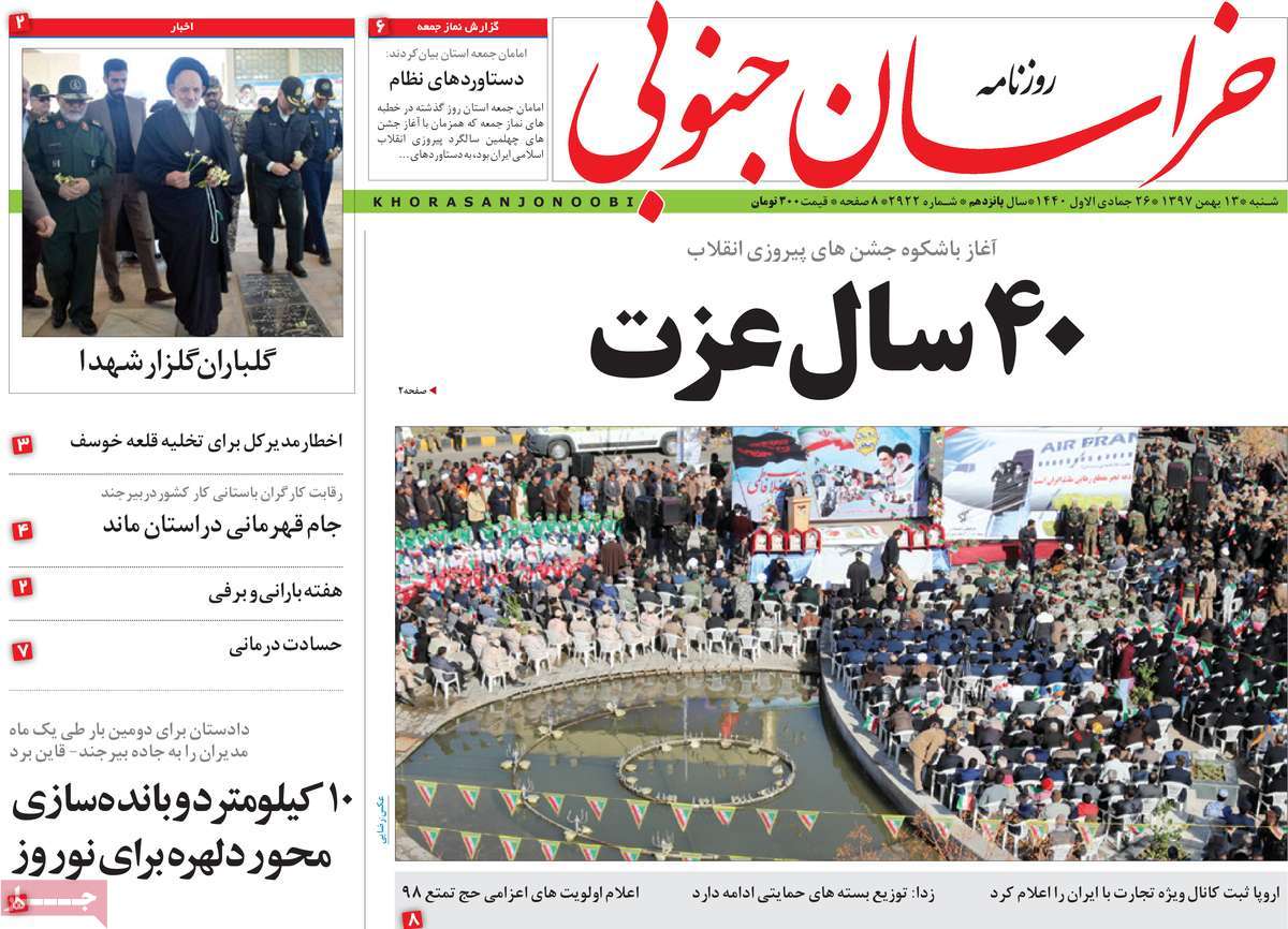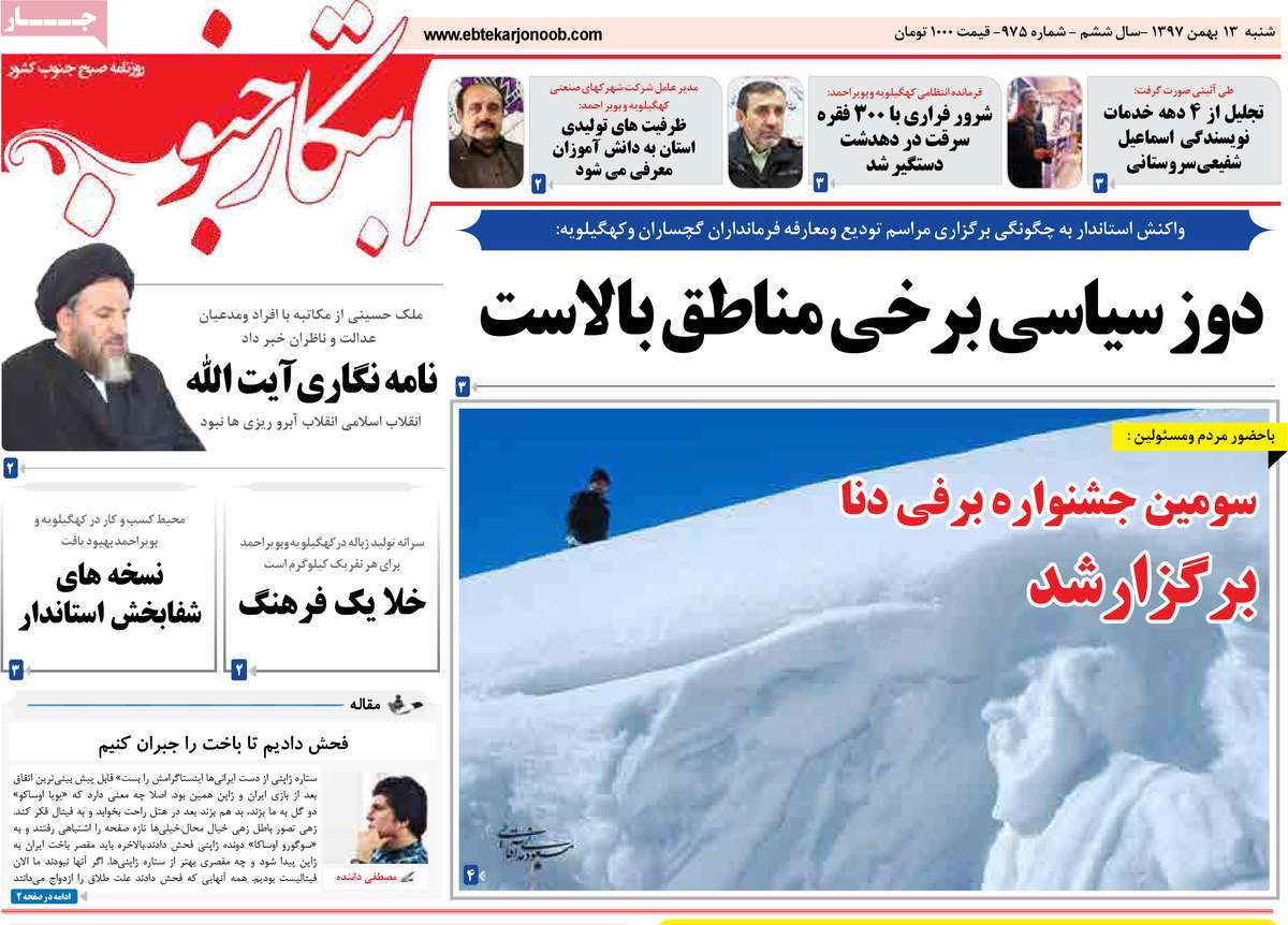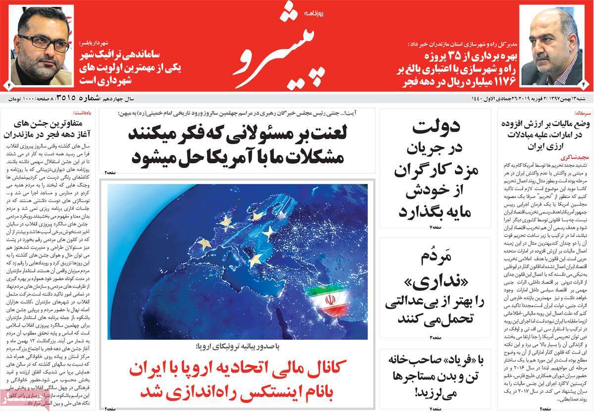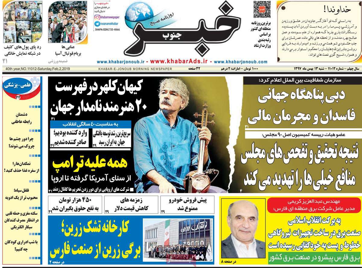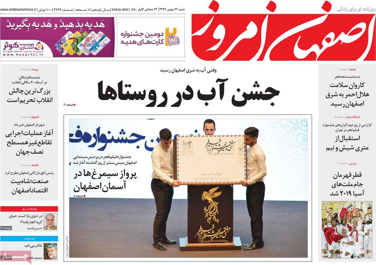 صفحه اول روزنامه های کشوری و استانی؛ شنبه 13 بهمن ماه 1397 /تصاویر