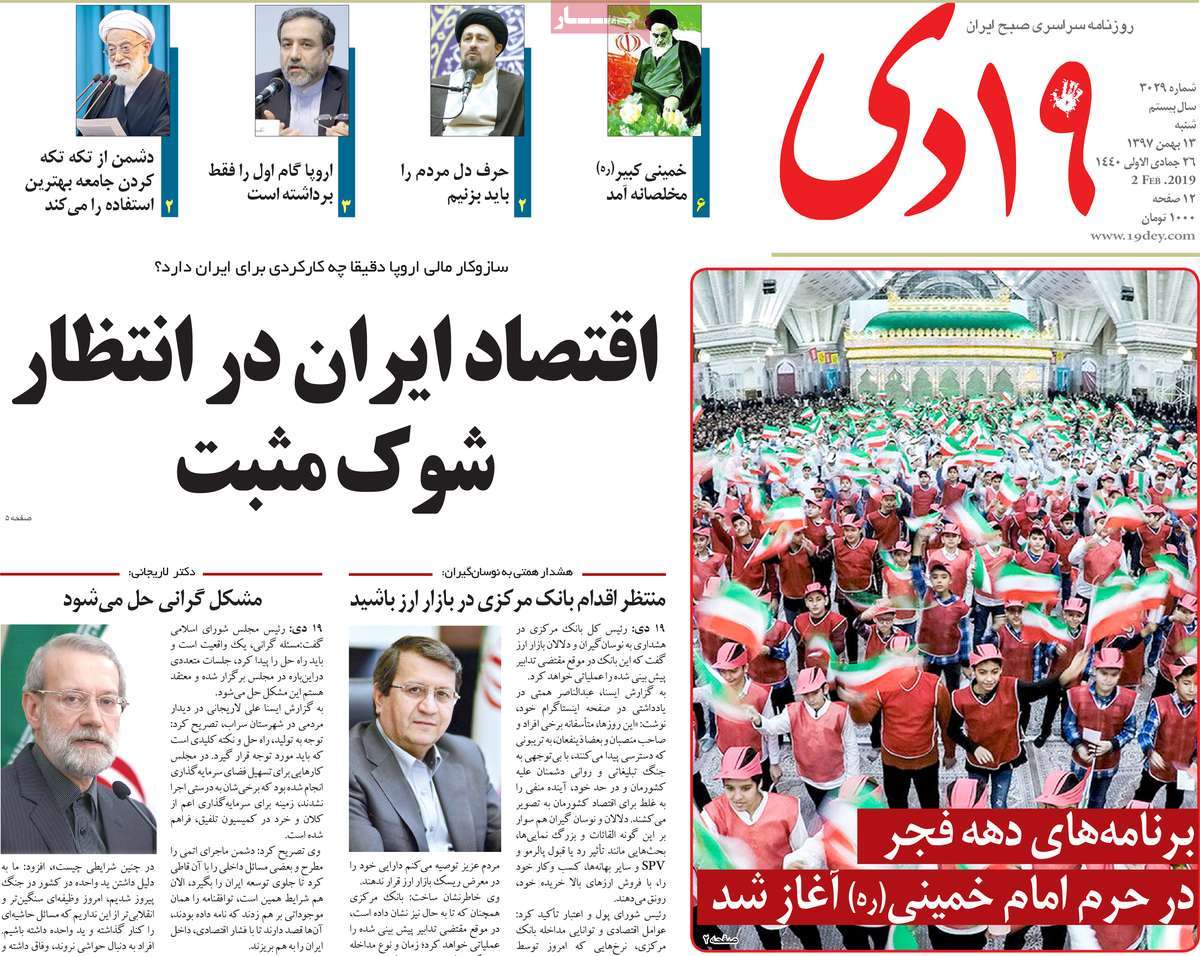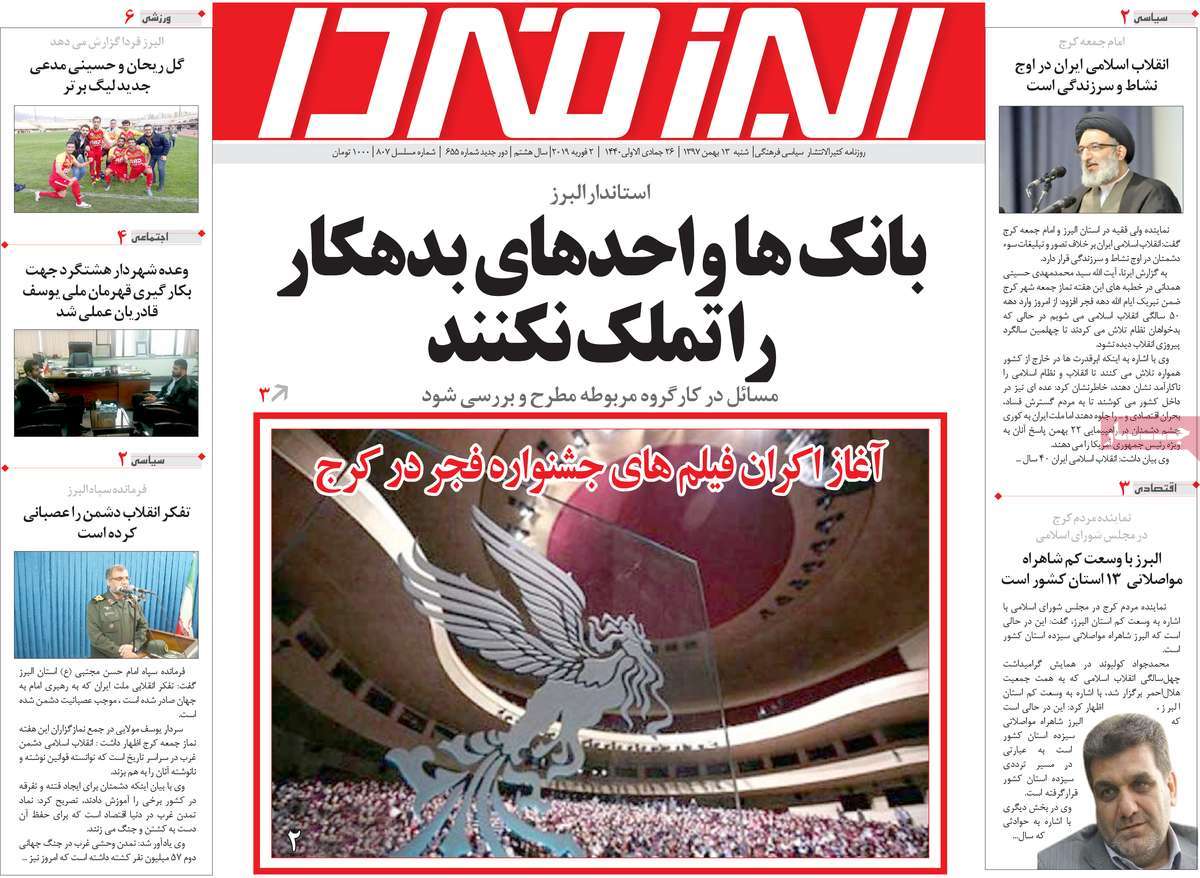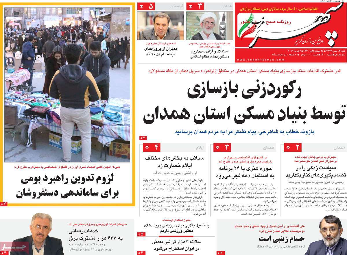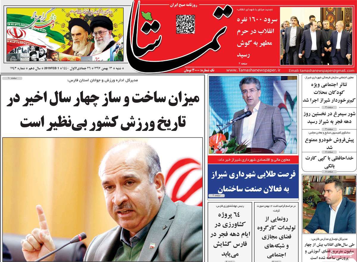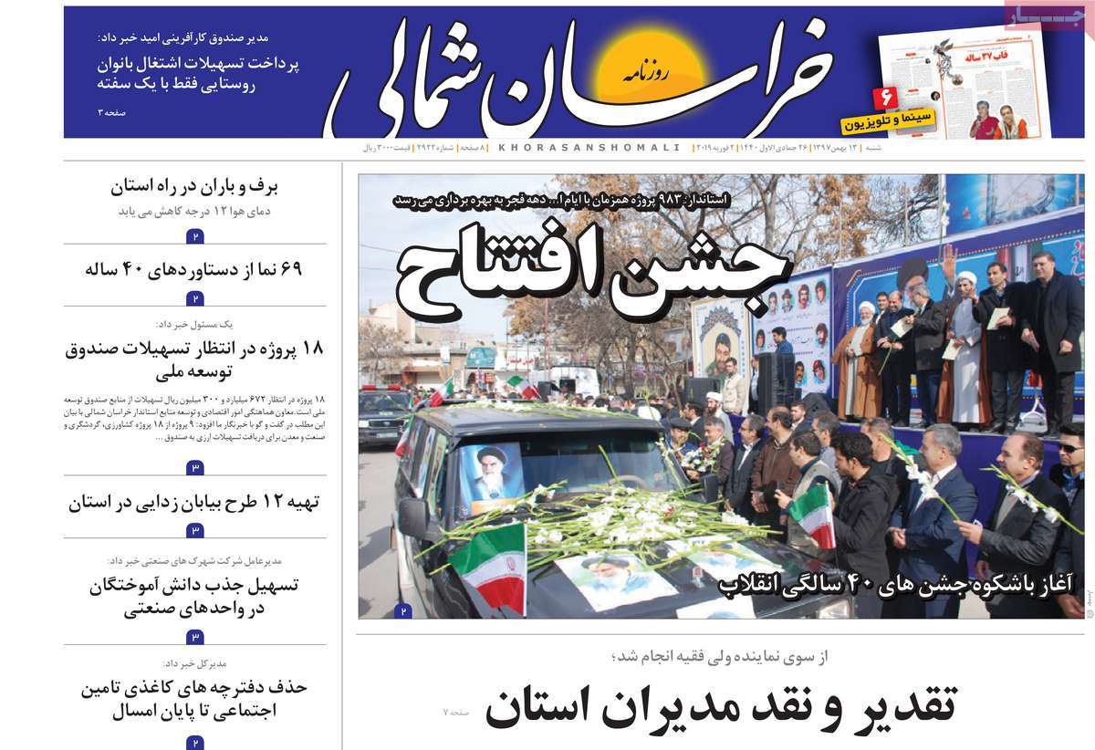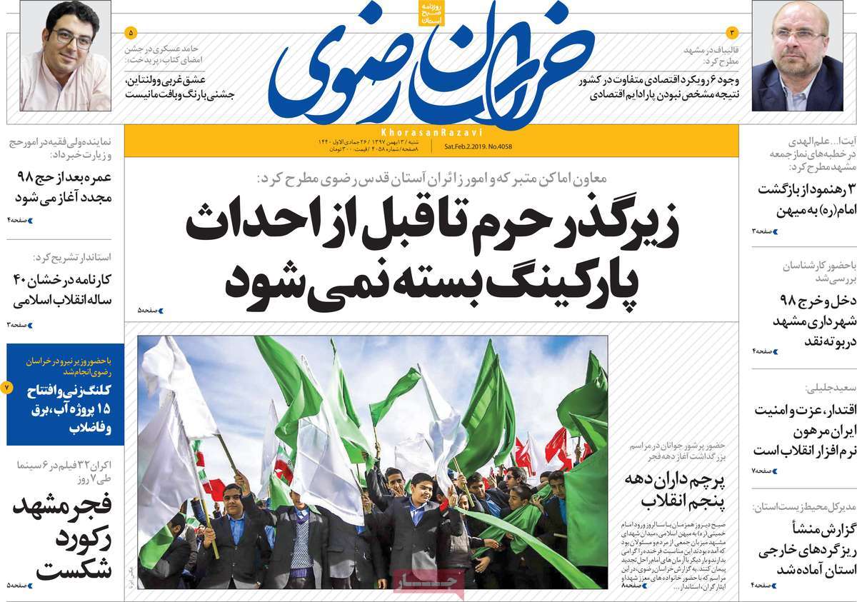 صفحه اول روزنامه های کشوری و استانی؛ شنبه 13 بهمن ماه 1397 /تصاویر