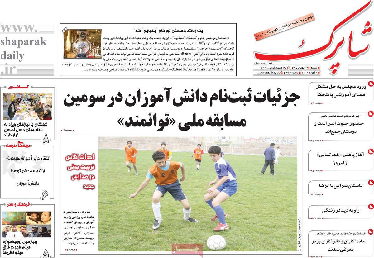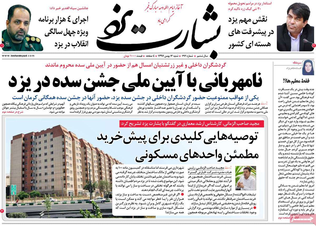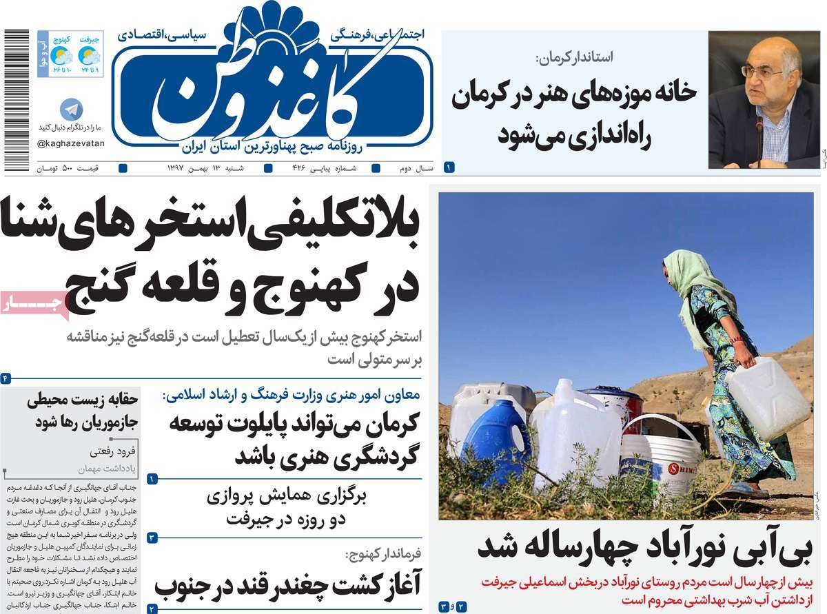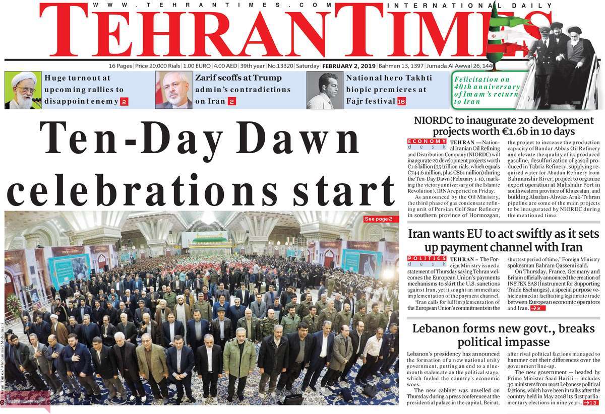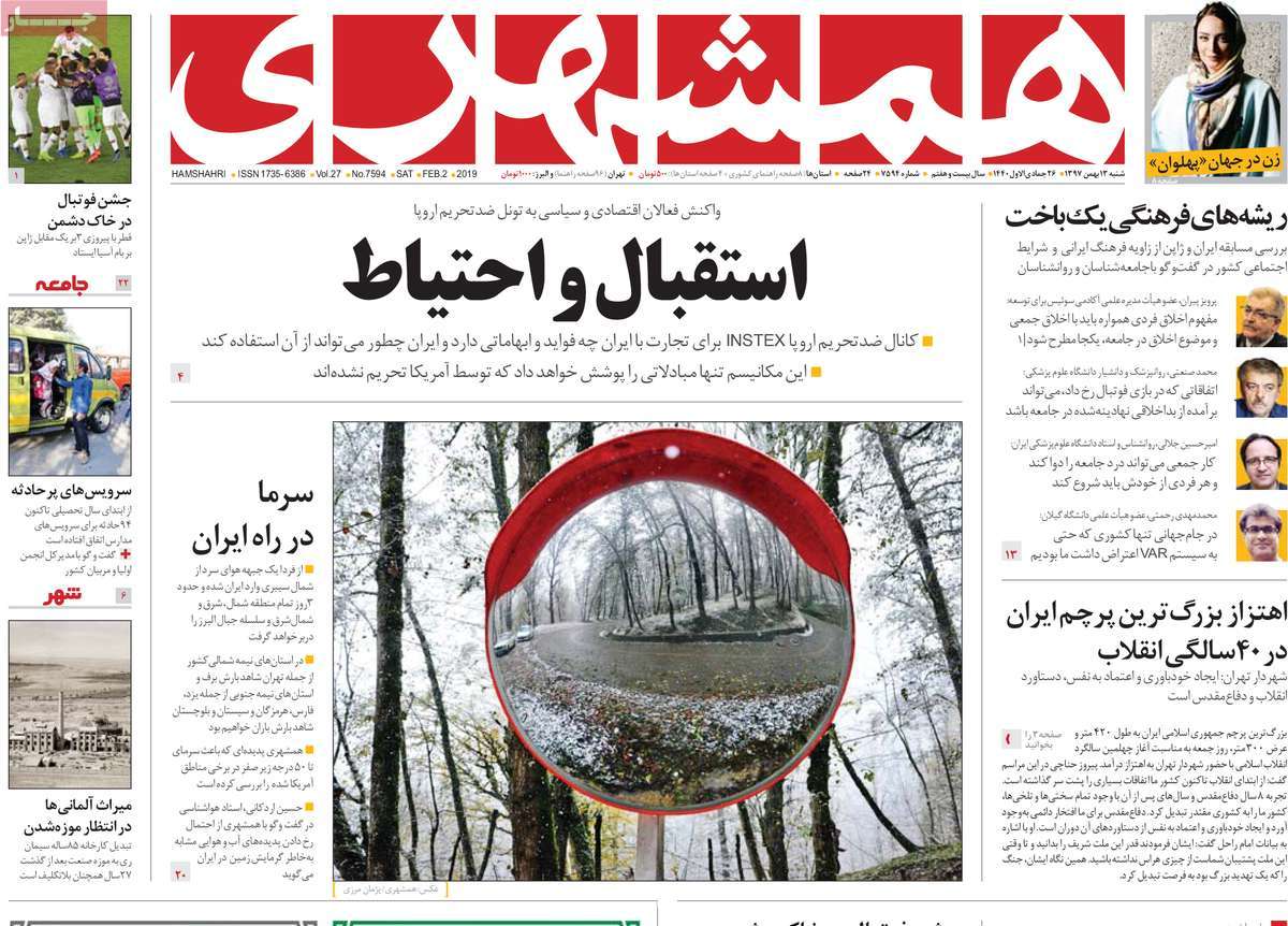 صفحه اول روزنامه های کشوری و استانی؛ شنبه 13 بهمن ماه 1397 /تصاویر