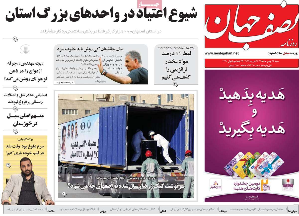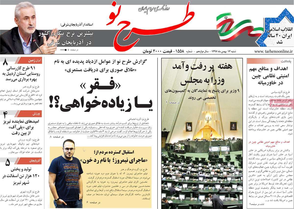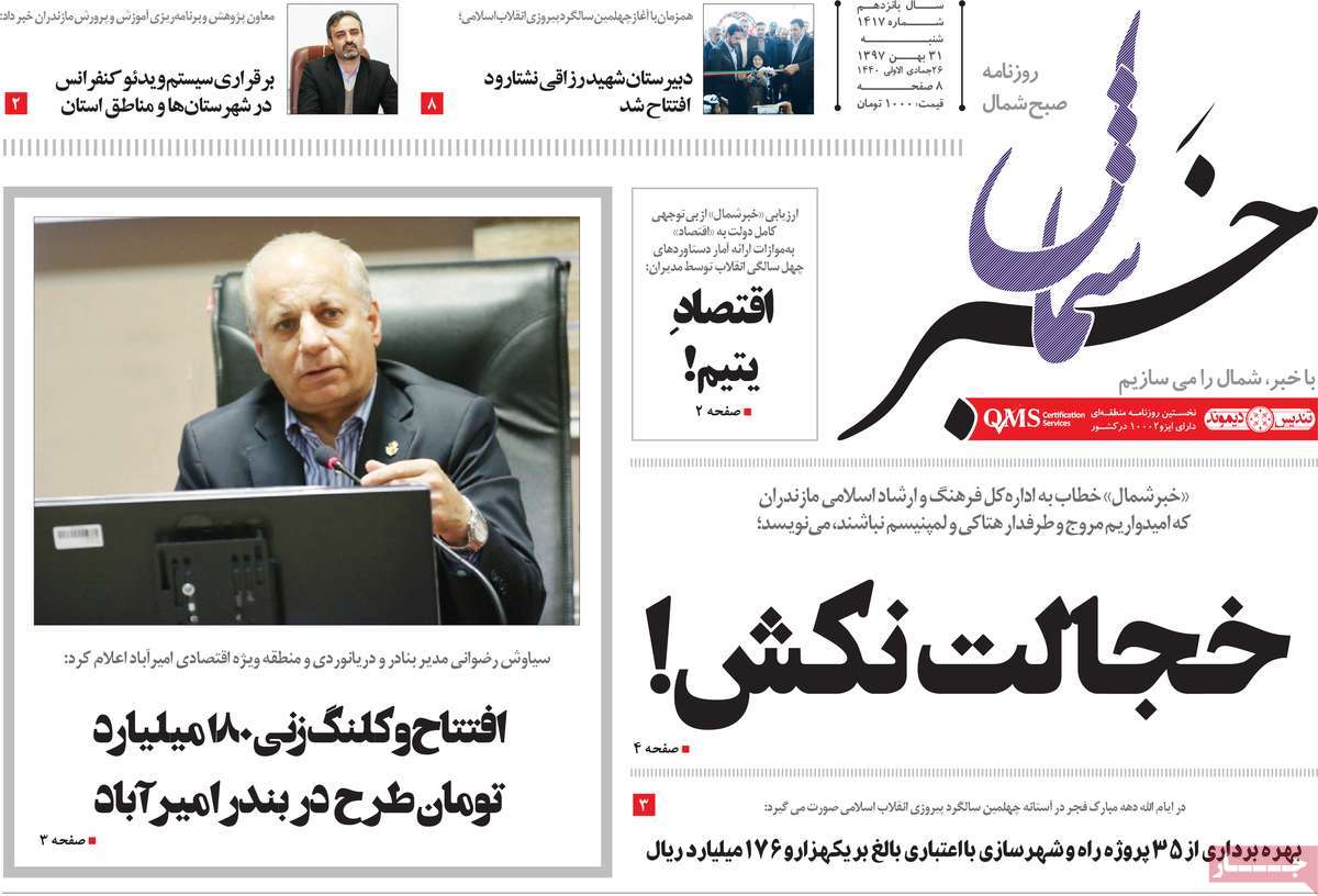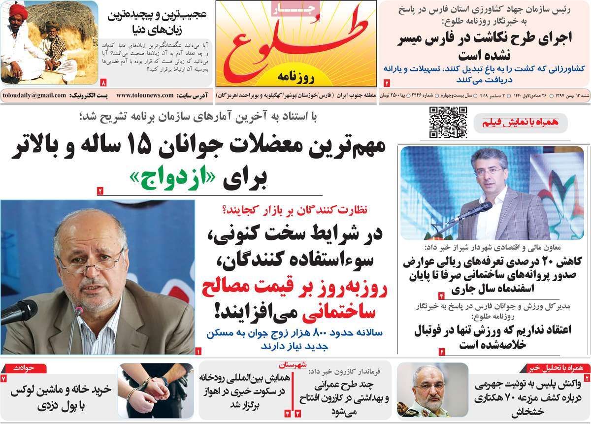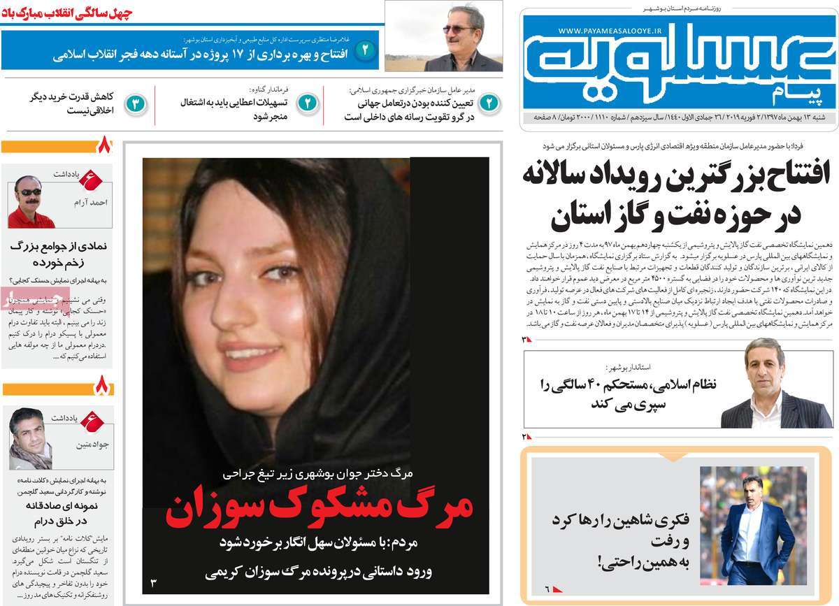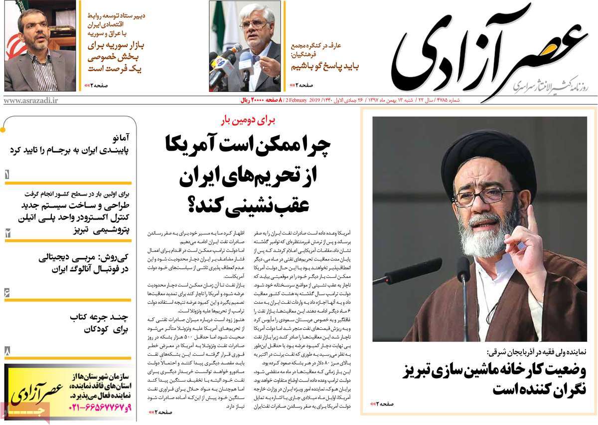 صفحه اول روزنامه های کشوری و استانی؛ شنبه 13 بهمن ماه 1397 /تصاویر