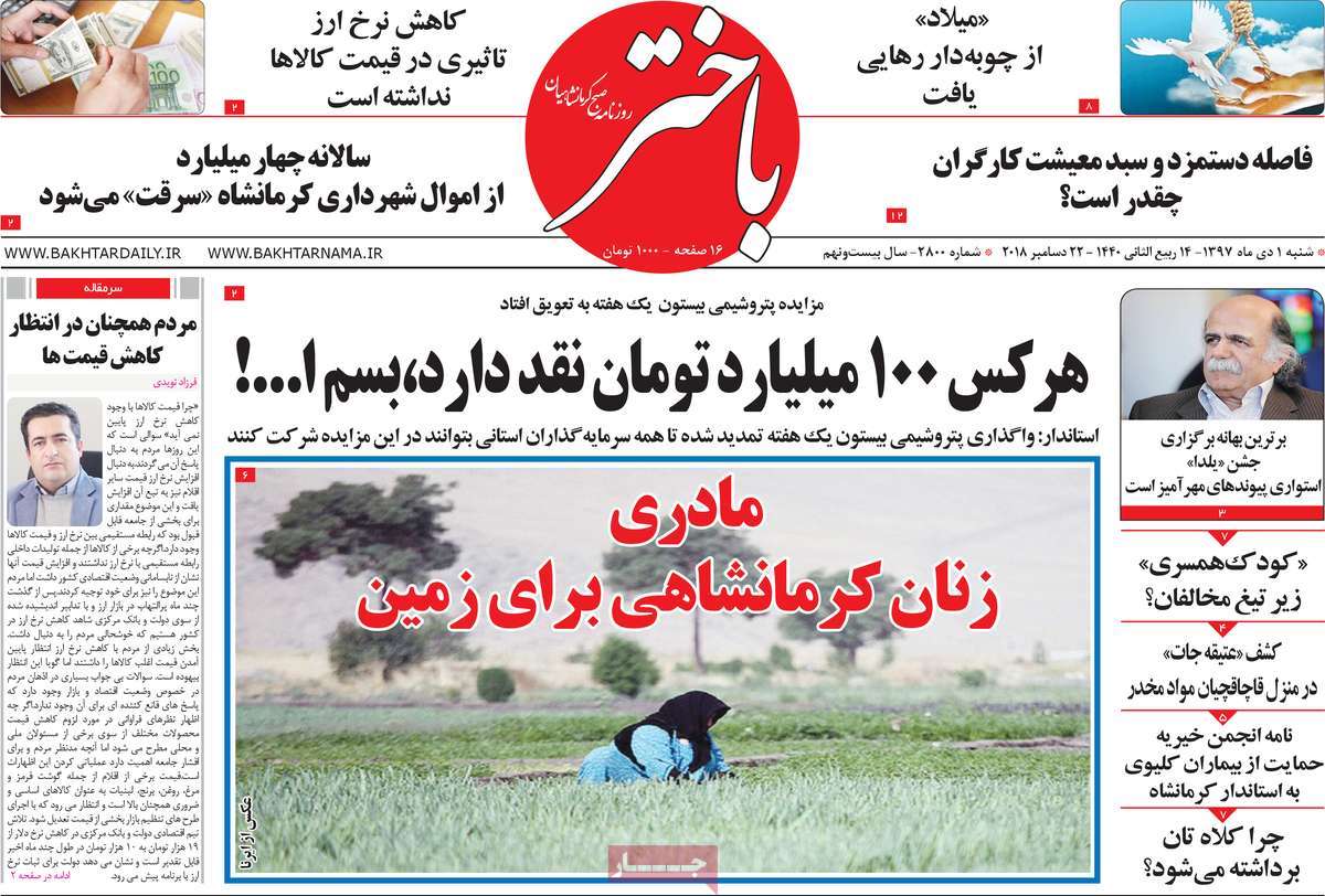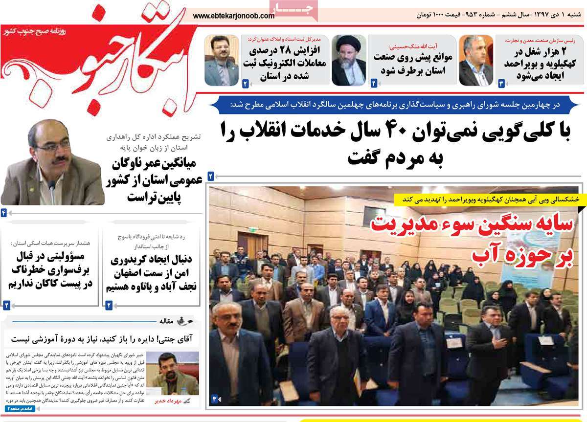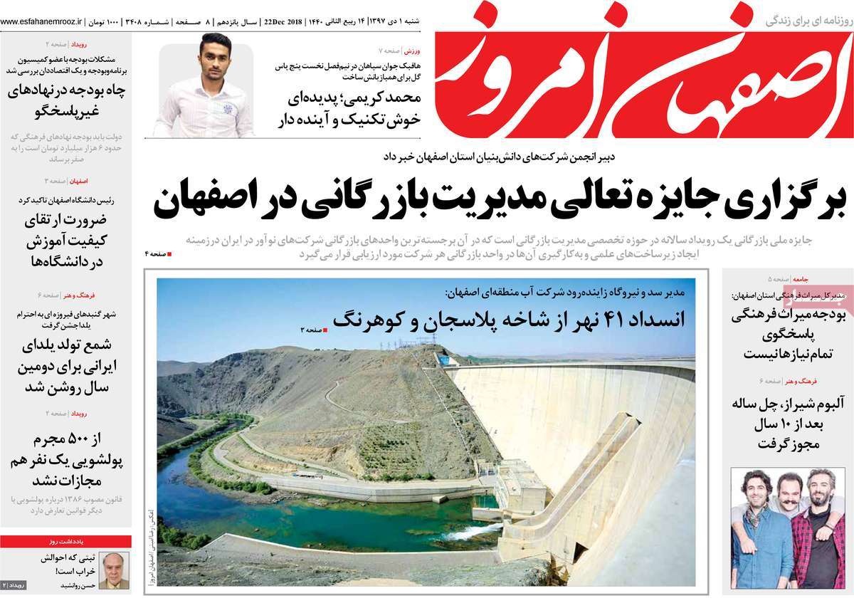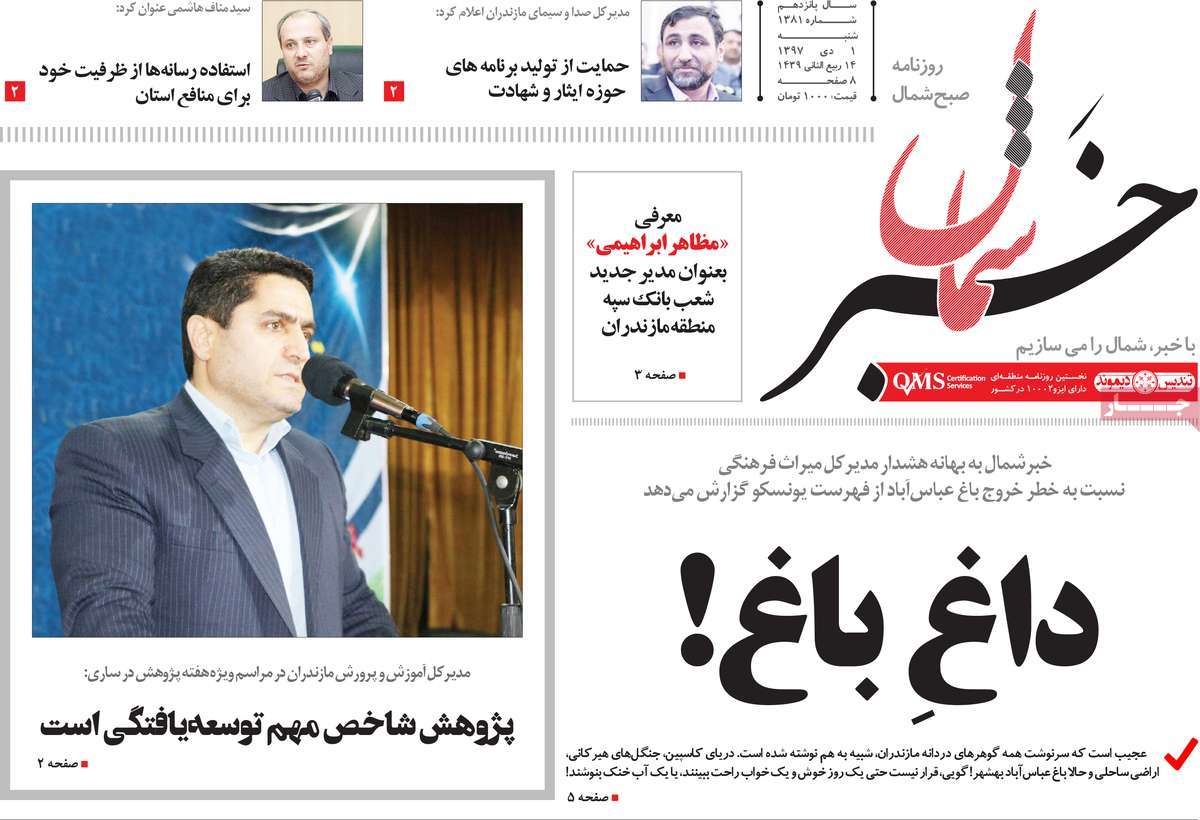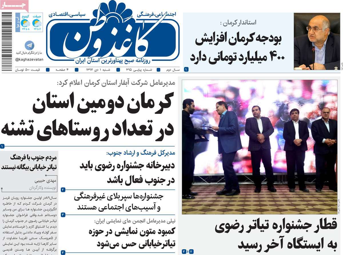صفحه اول روزنامه های کشوری و استانی؛ شنبه اول دی ماه 1397 /تصاویر