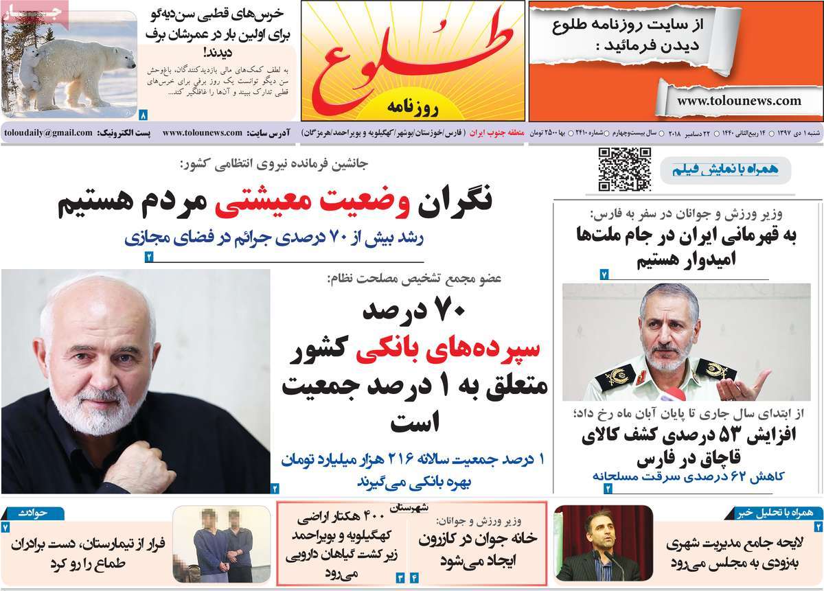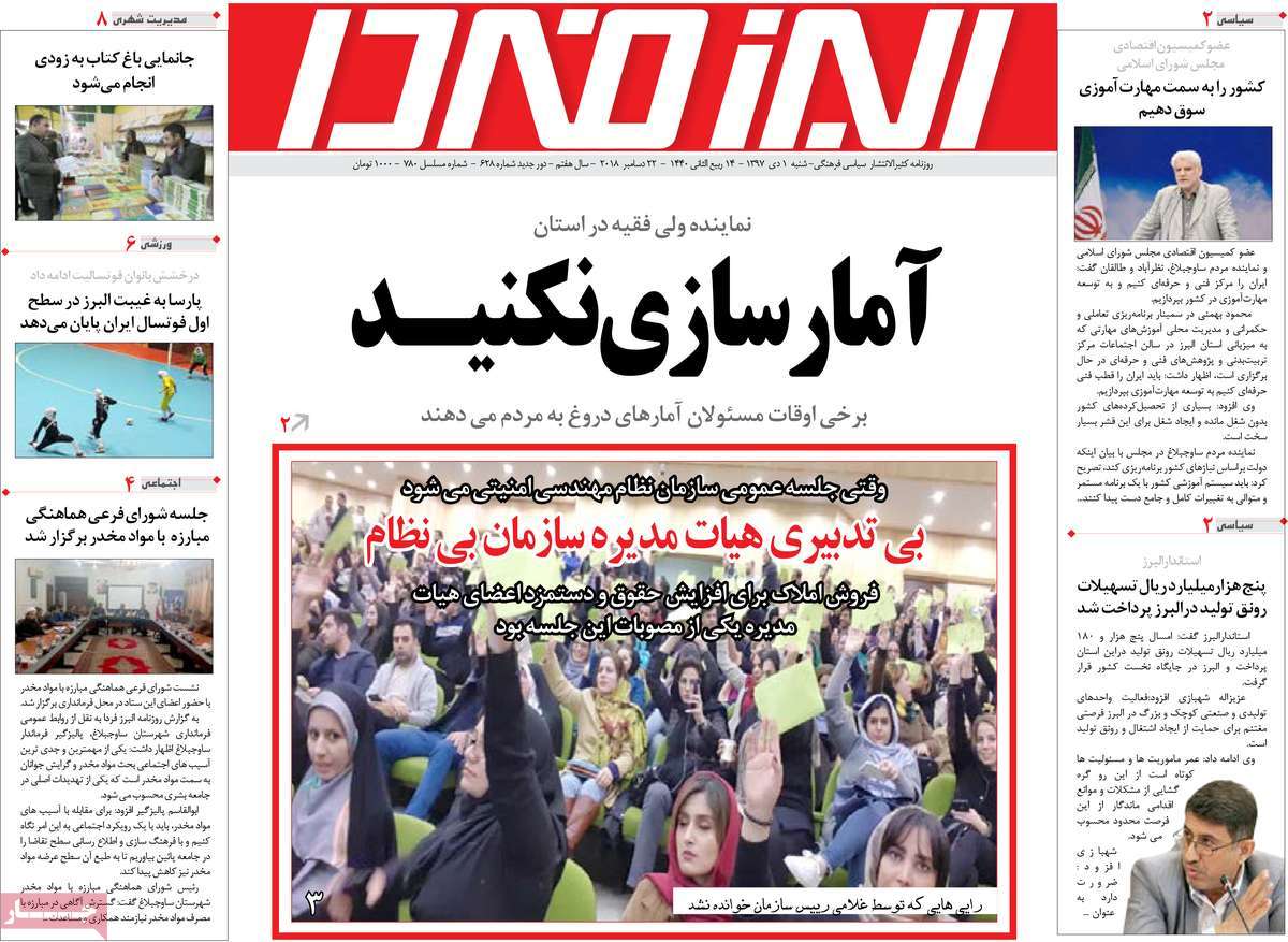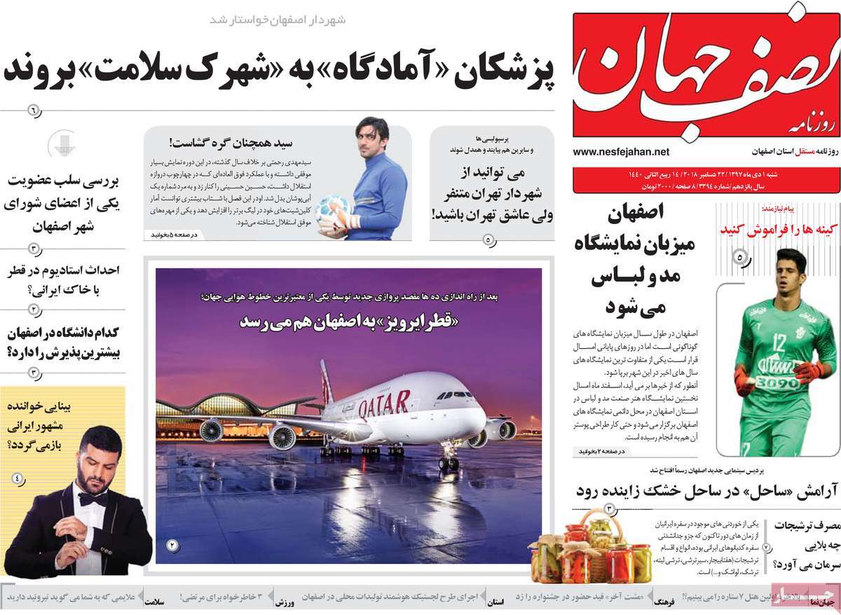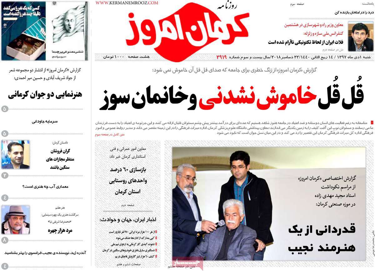 صفحه اول روزنامه های کشوری و استانی؛ شنبه اول دی ماه 1397 /تصاویر