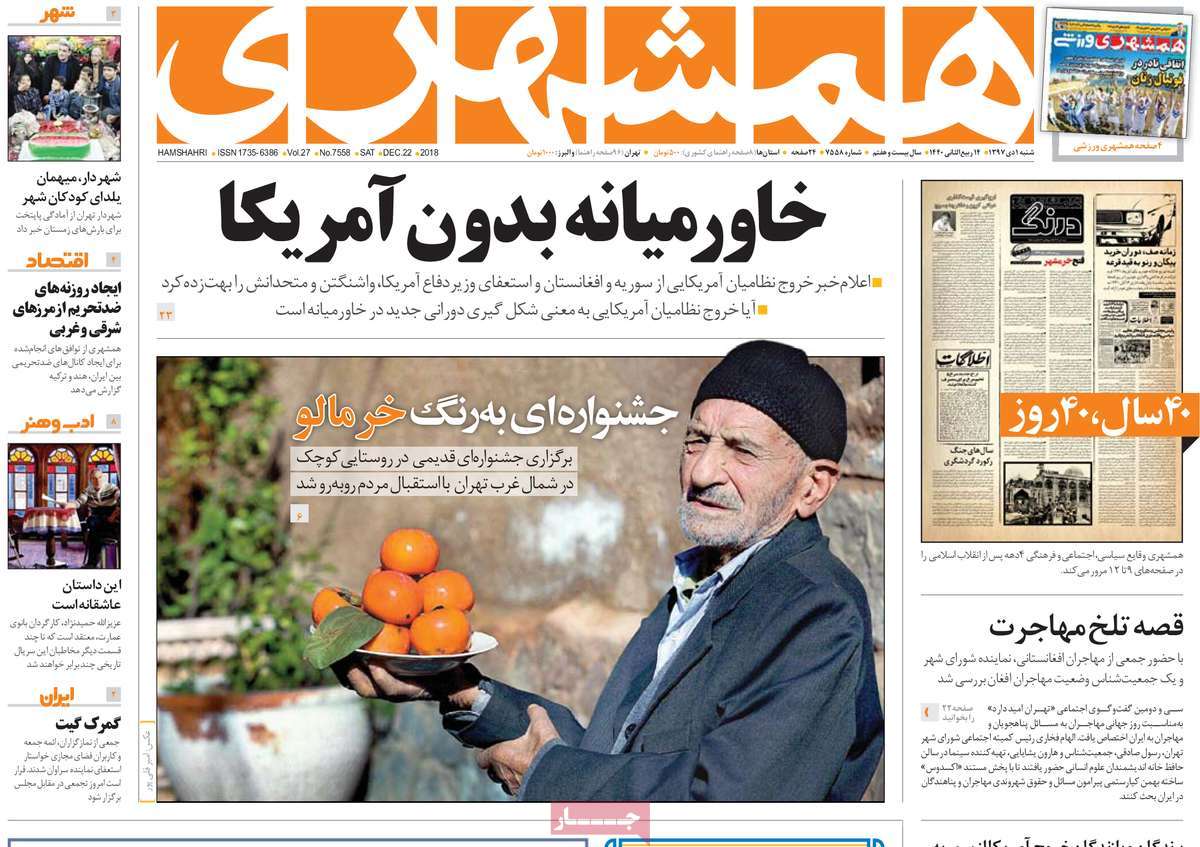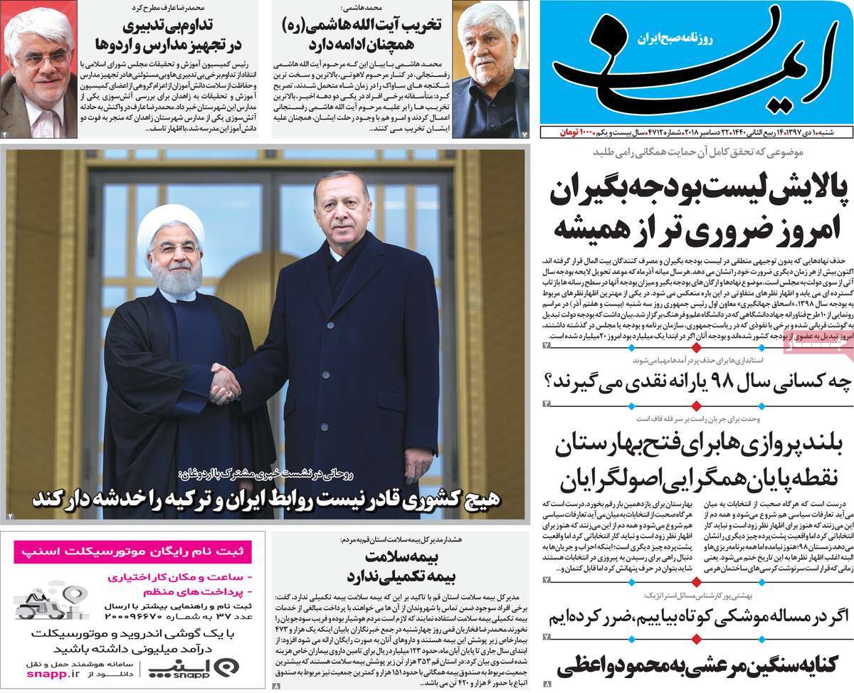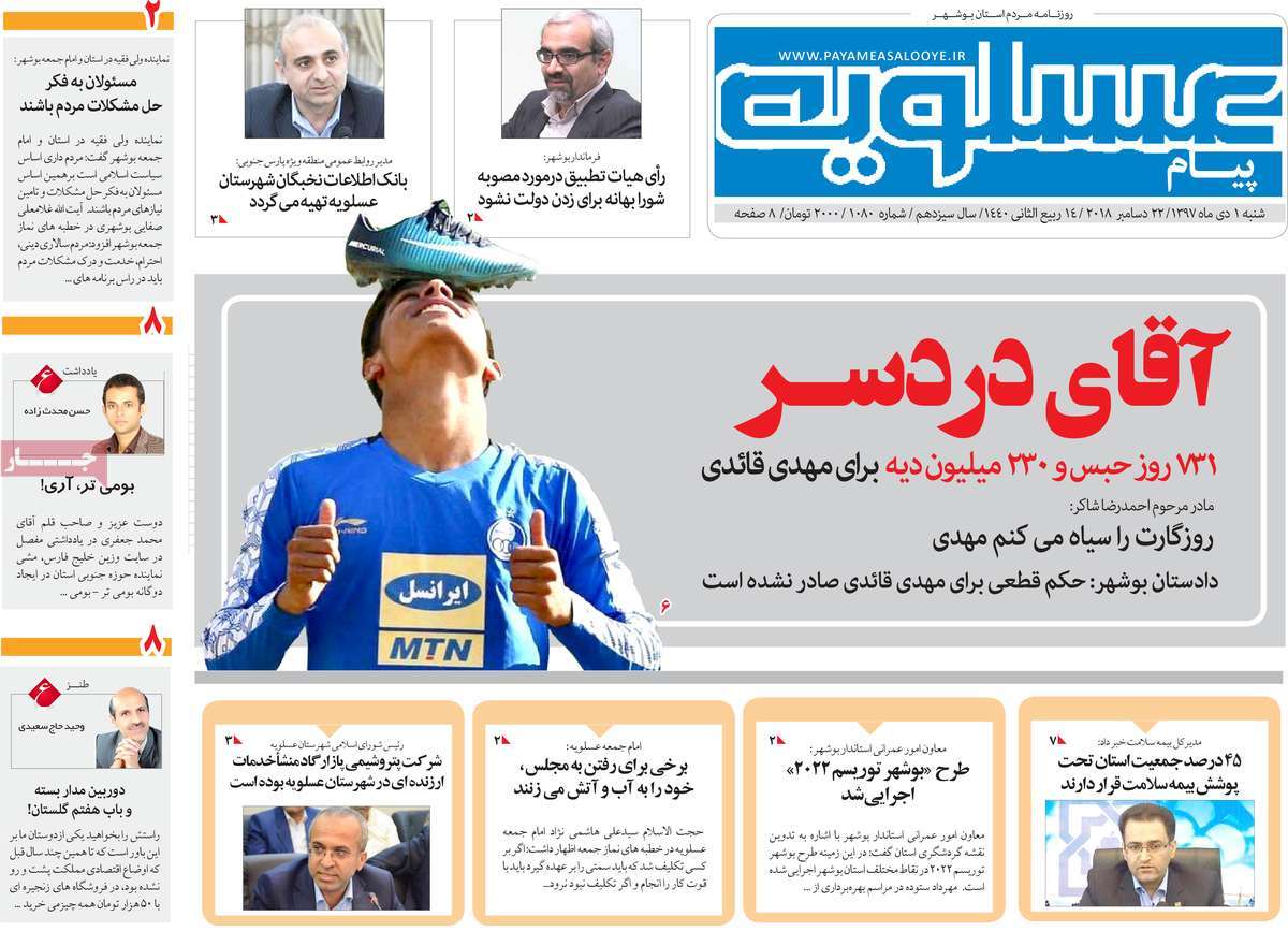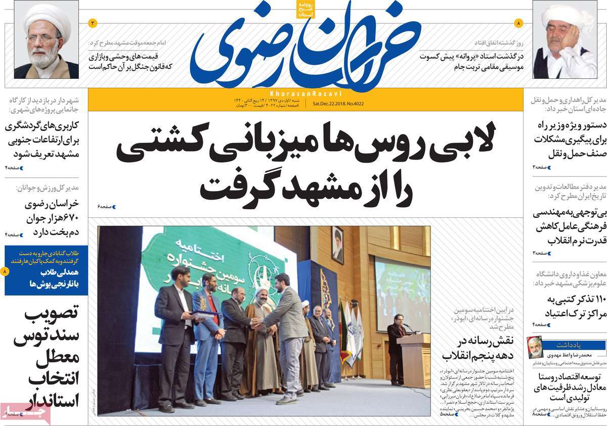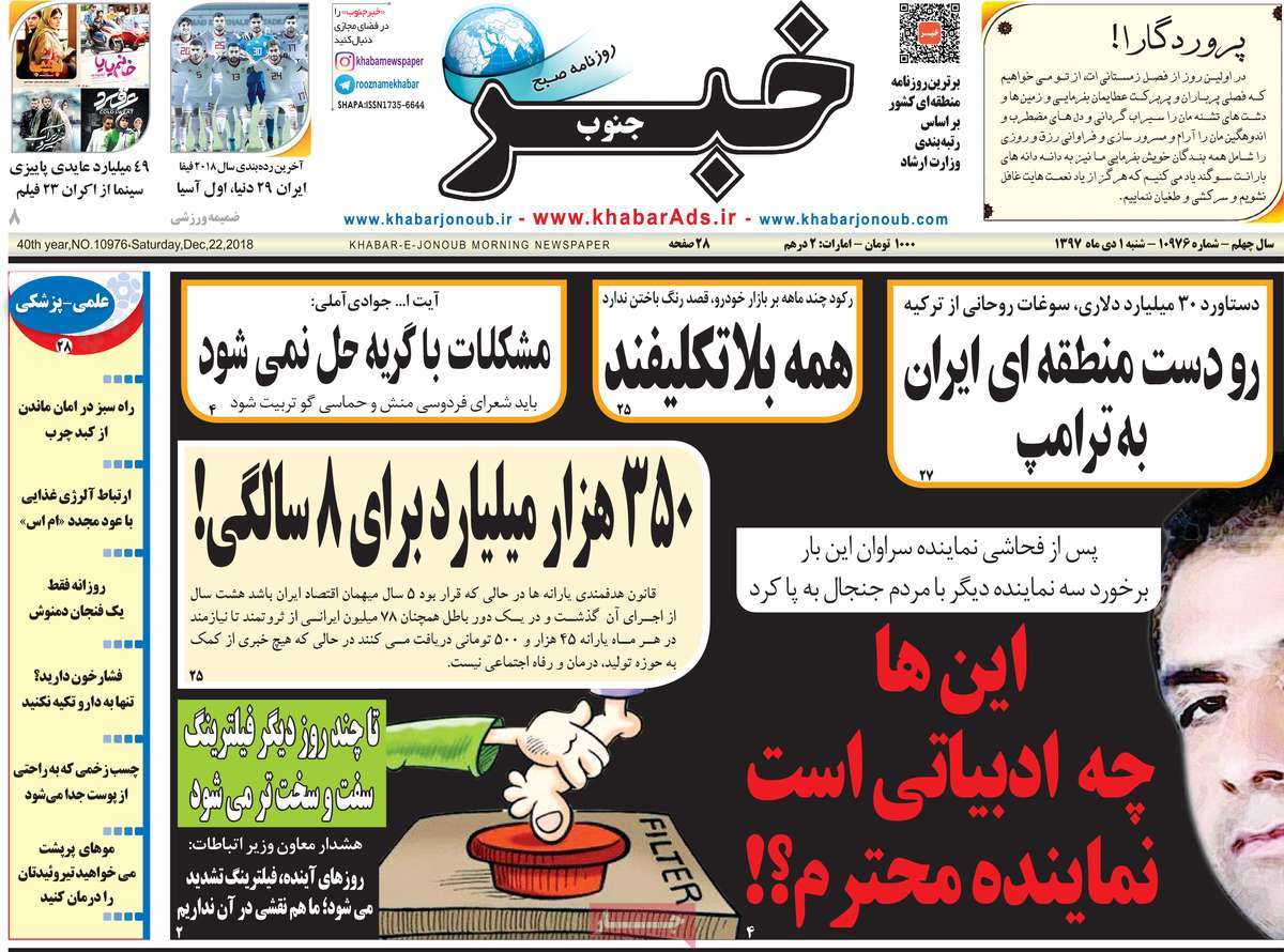 صفحه اول روزنامه های کشوری و استانی؛ شنبه اول دی ماه 1397 /تصاویر