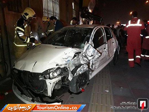 نیمه شب گذشته، یک دستگاه خودروی پژو ۲۰۶ در بزرگراه رسالت، مسیر غرب به شرق ابتدای خیابان۱۶ متری اول با یک عابر پیاده و یک دستگاه پراید تصادف کرد.