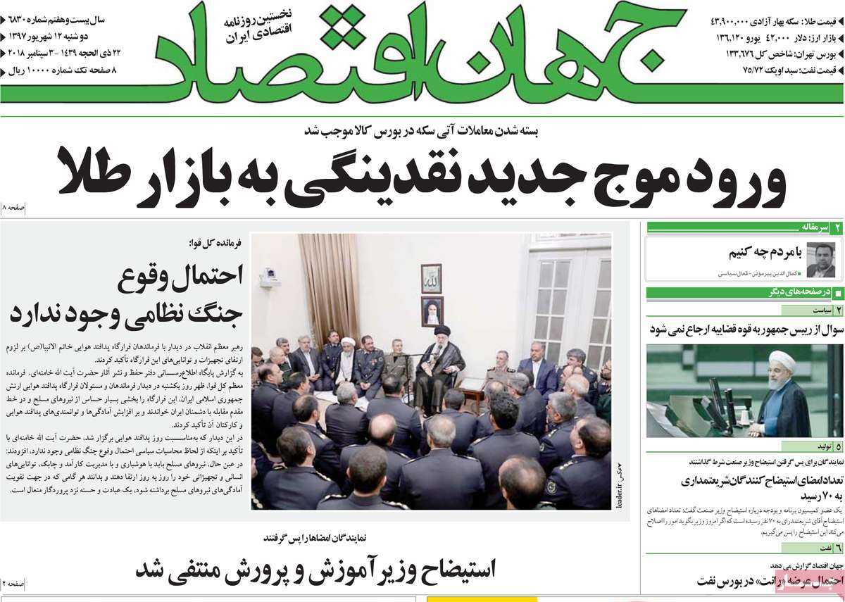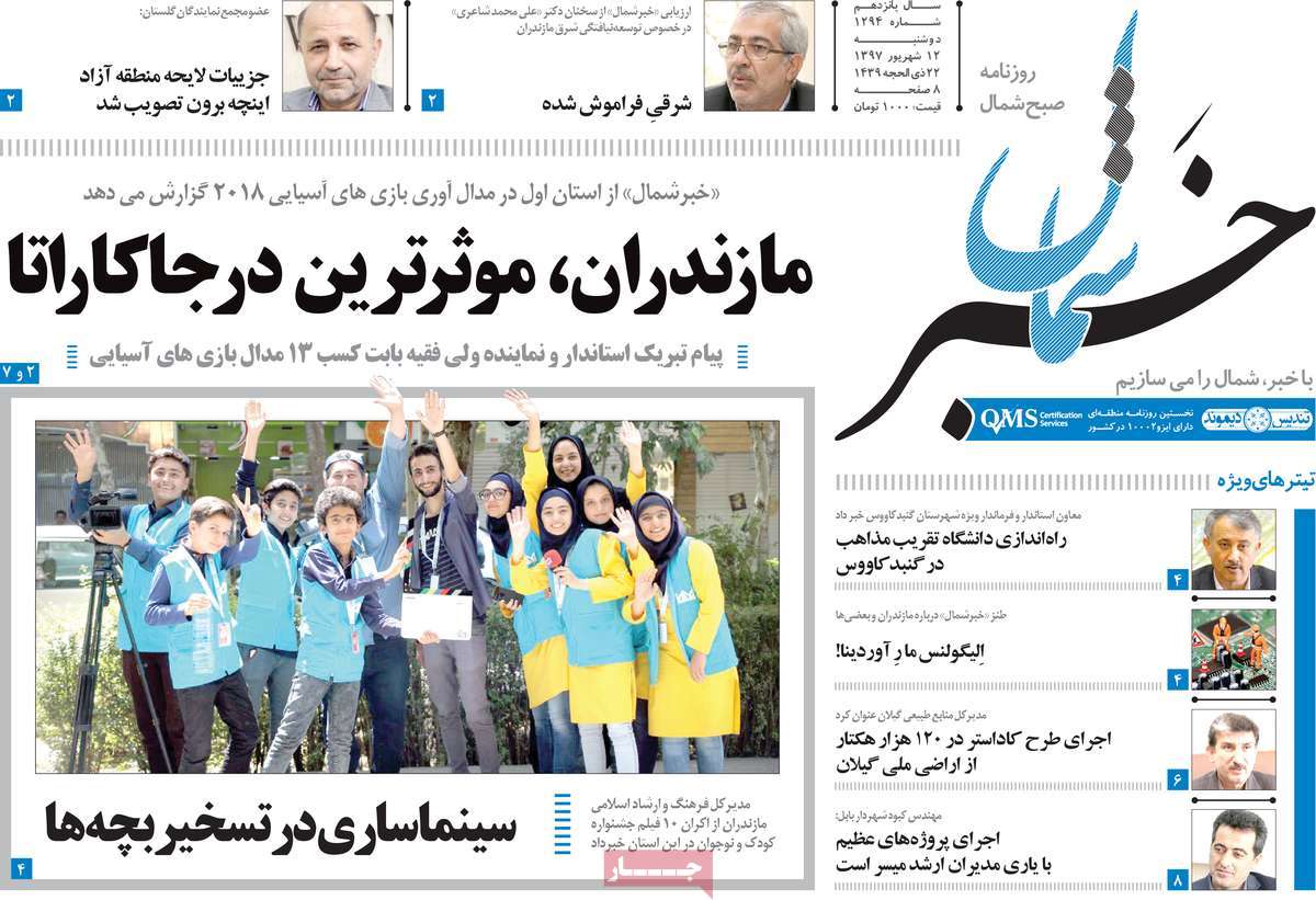 صفحه اول روزنامه های کشوری واستانی؛دوشنبه ۱۲شهریورماه ۱۳۹۷/تصاویر