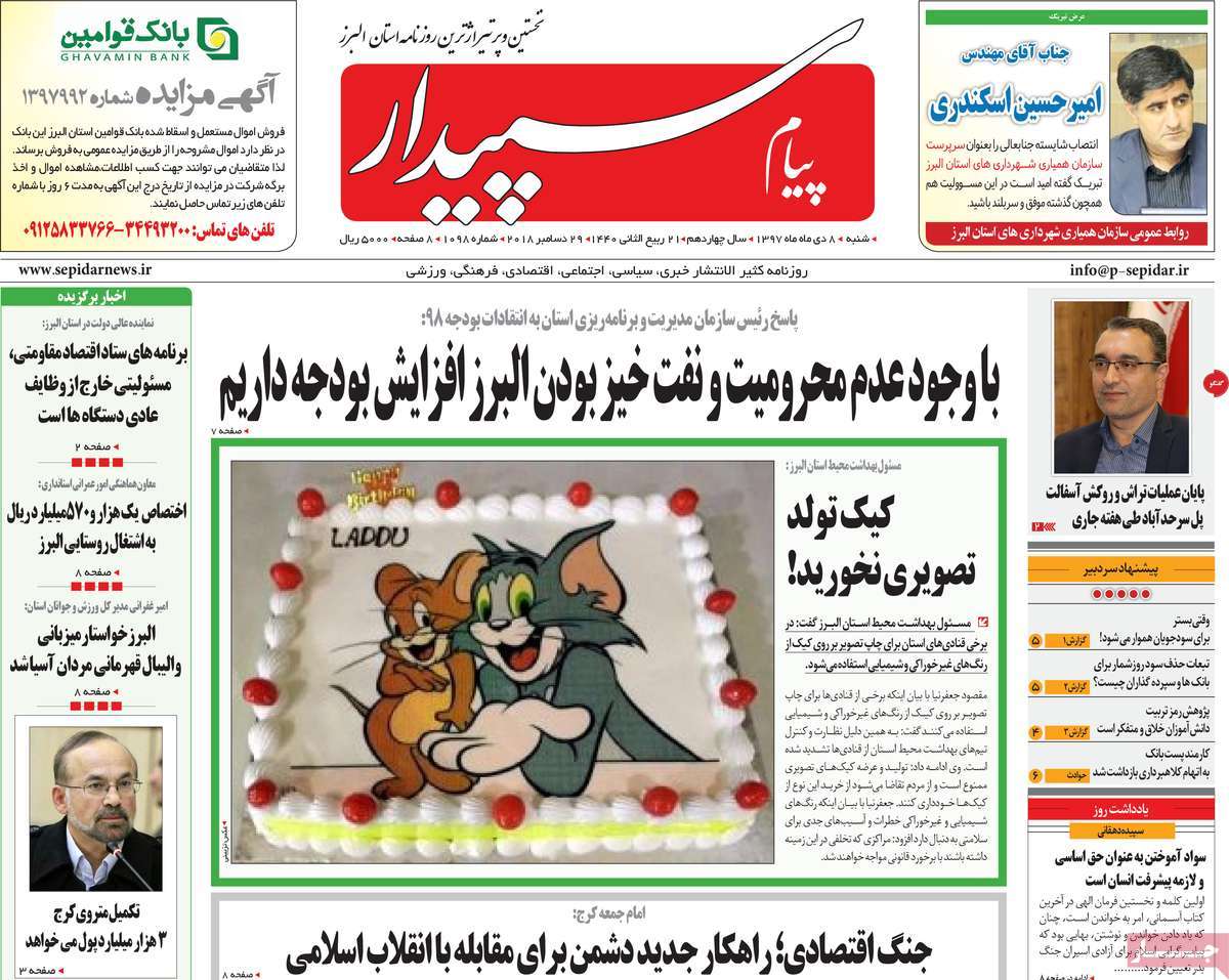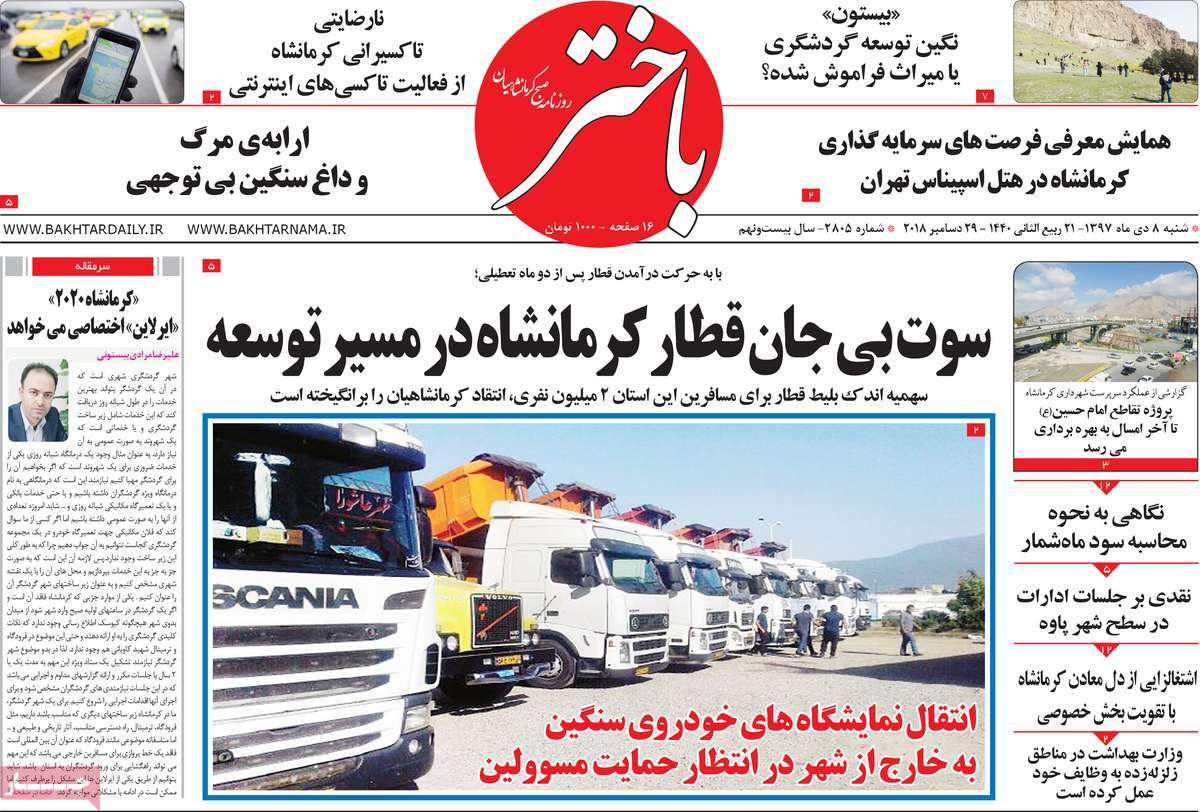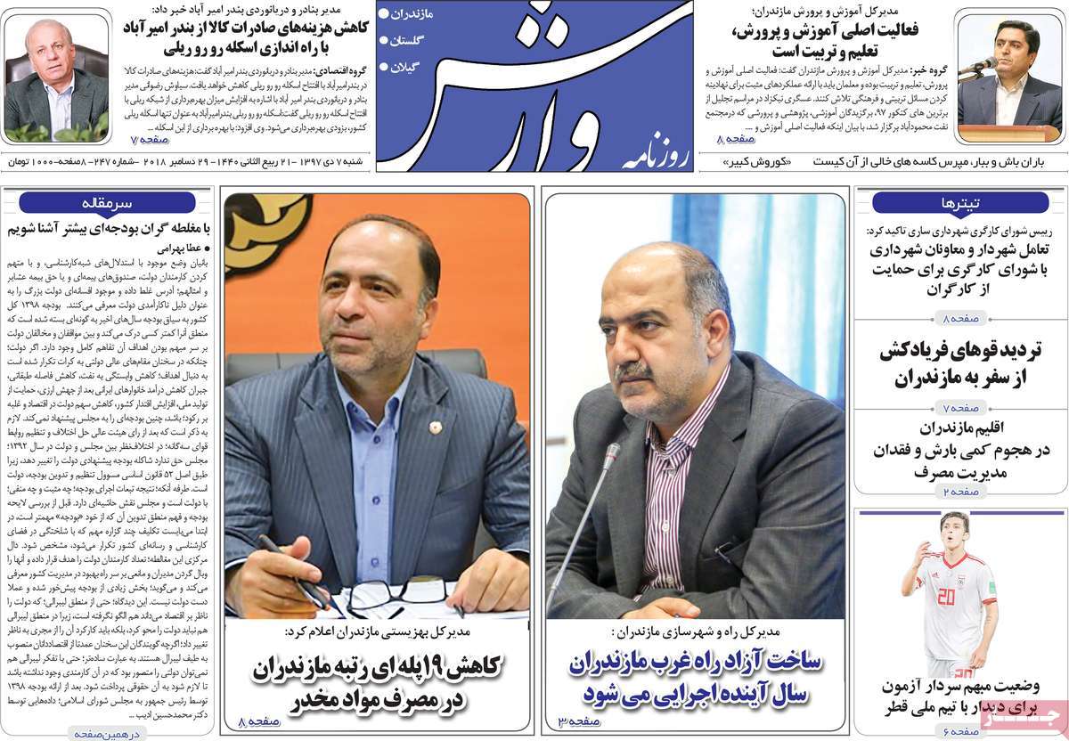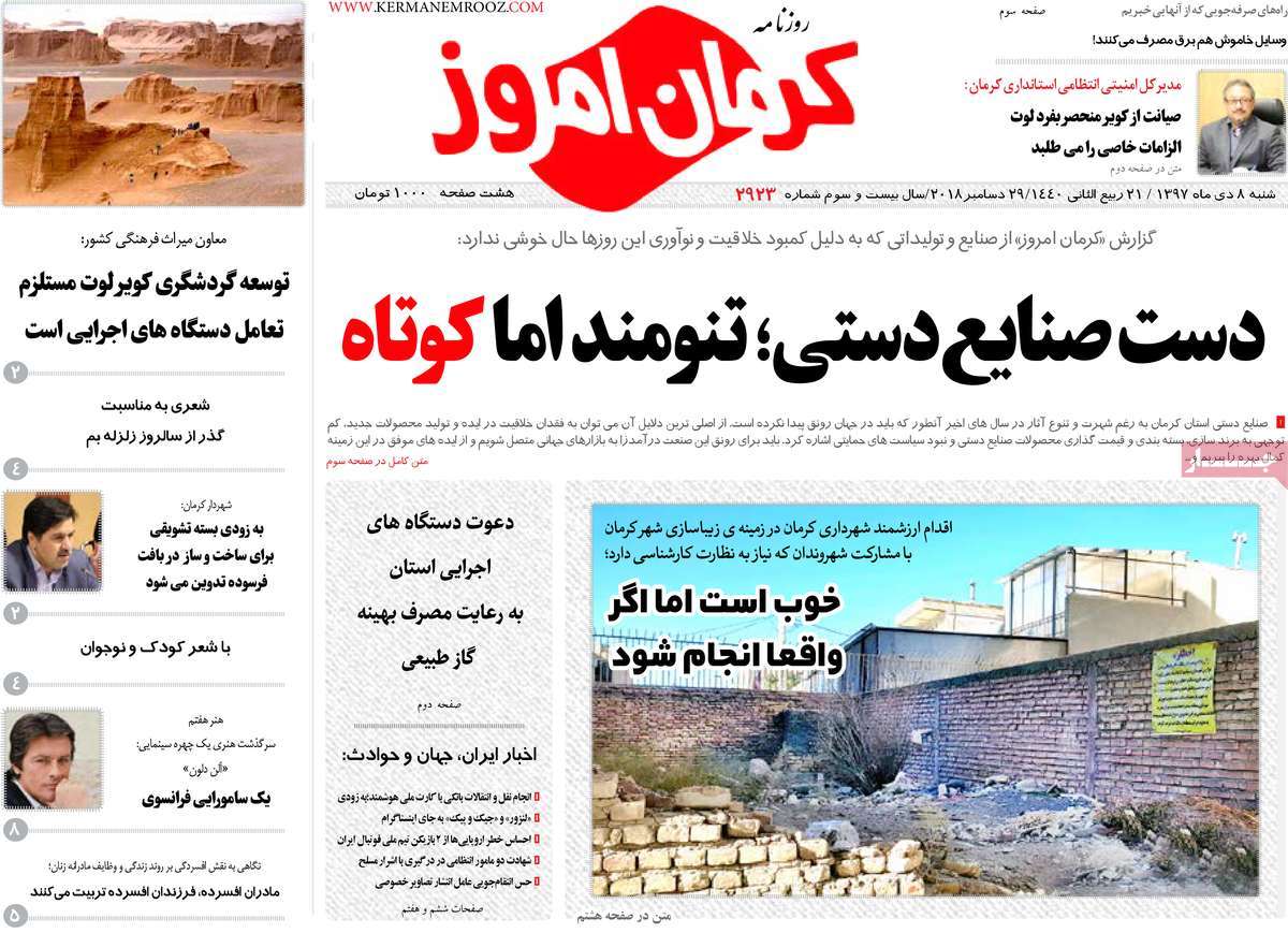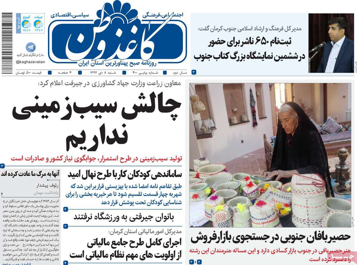 صفحه اول روزنامه های کشوری و استانی؛ شنبه هشتم دی ماه 1397 /تصاویر