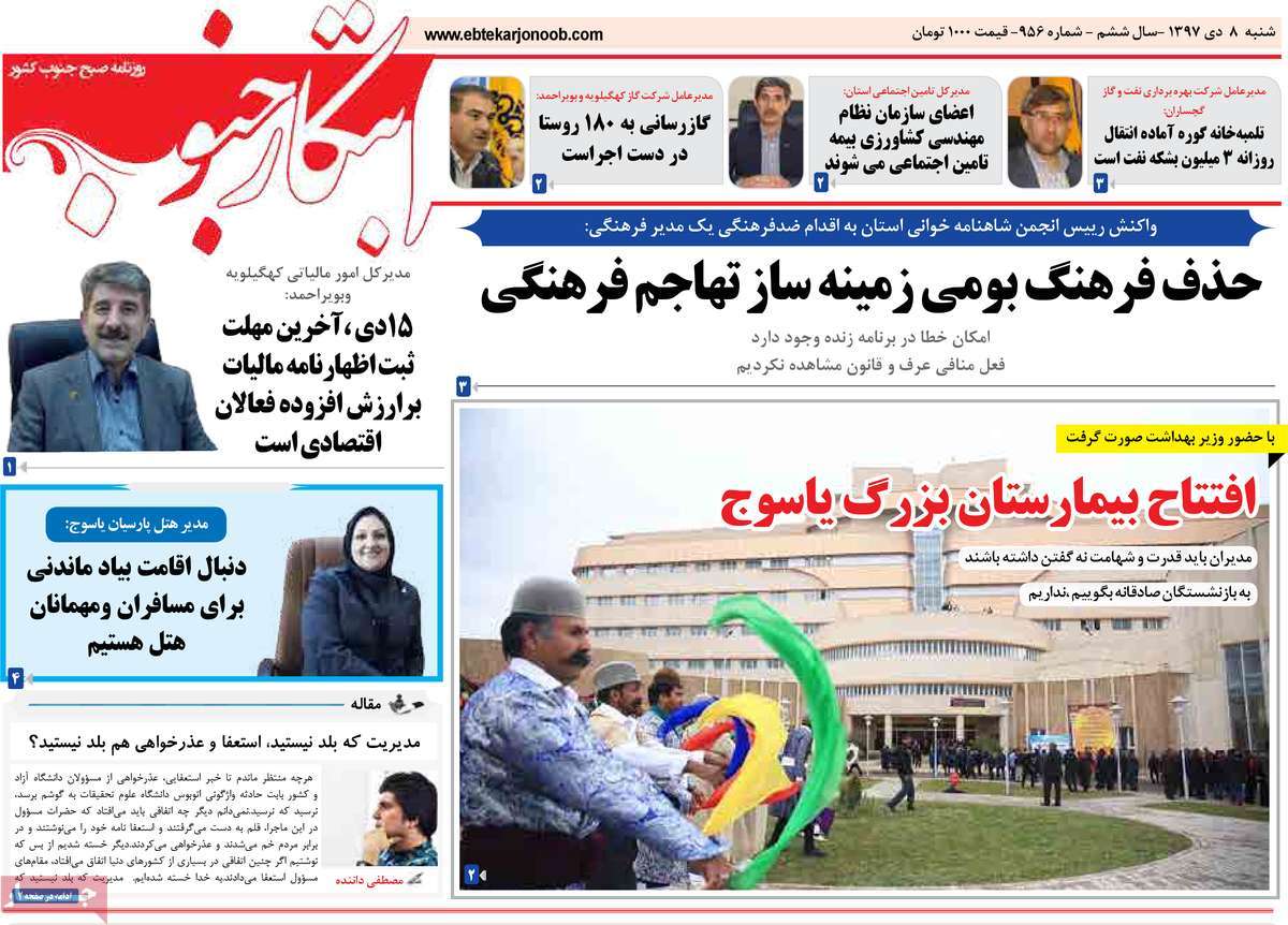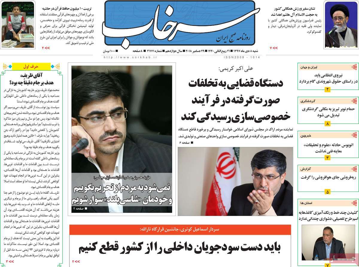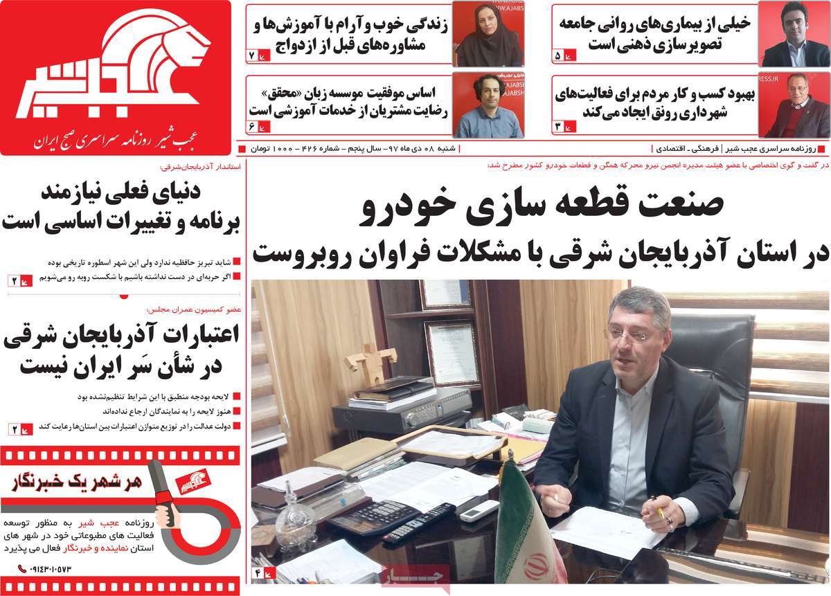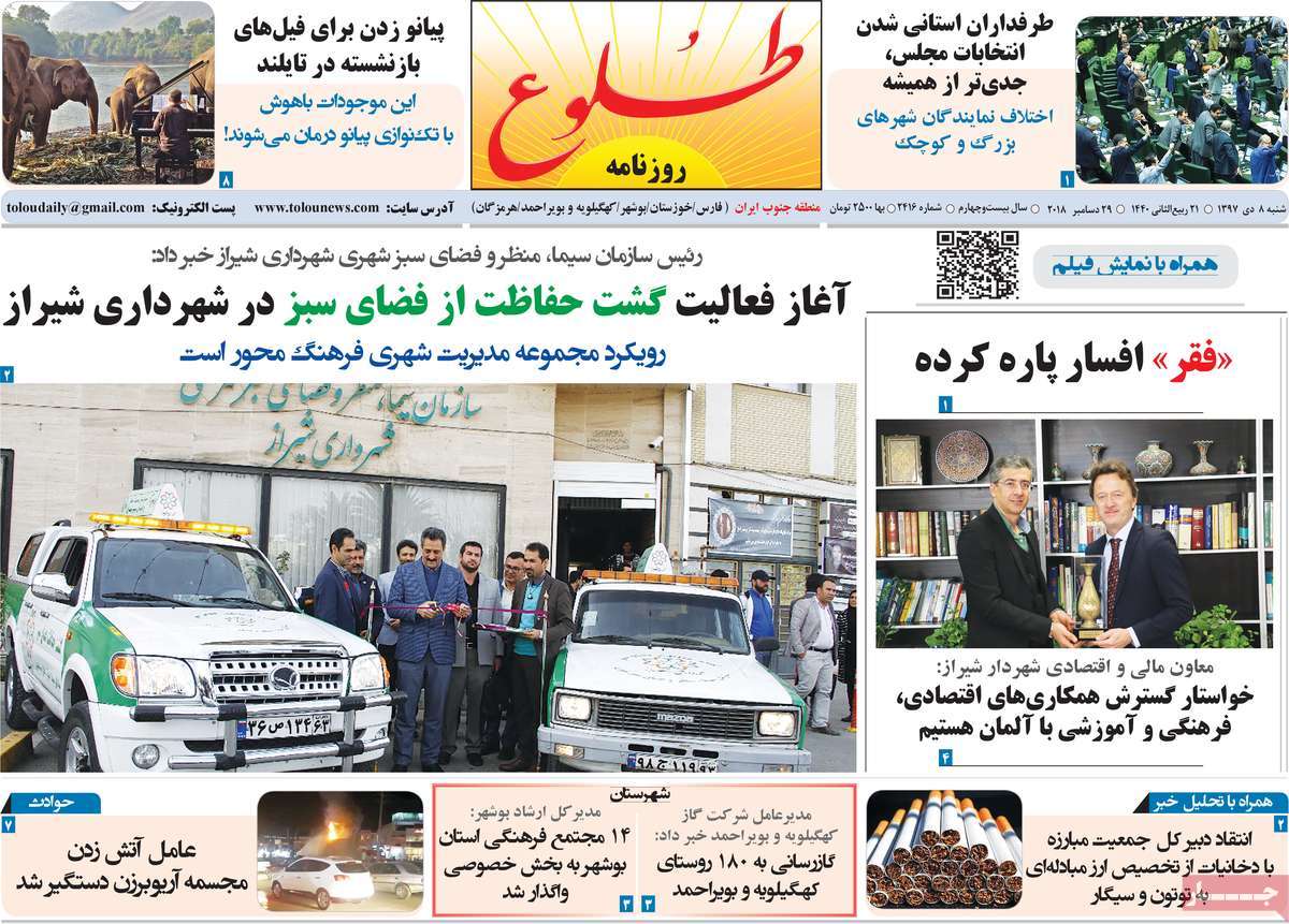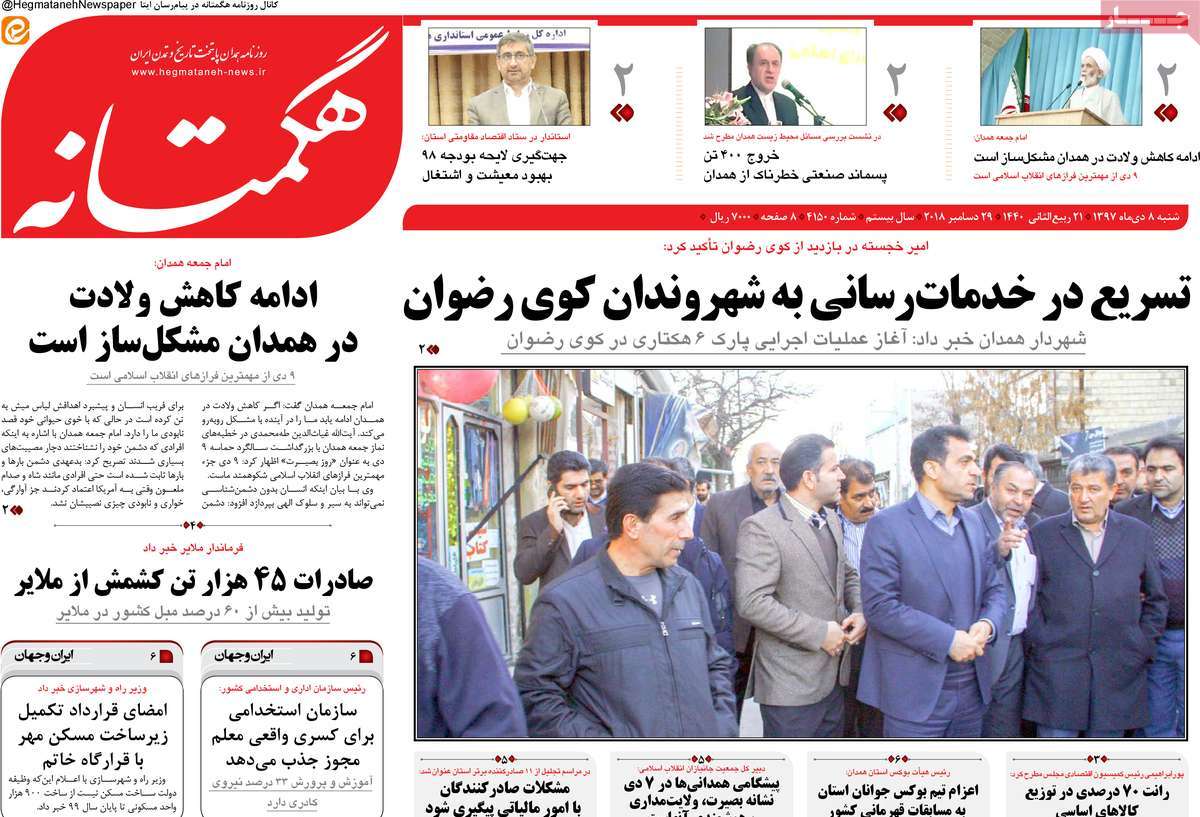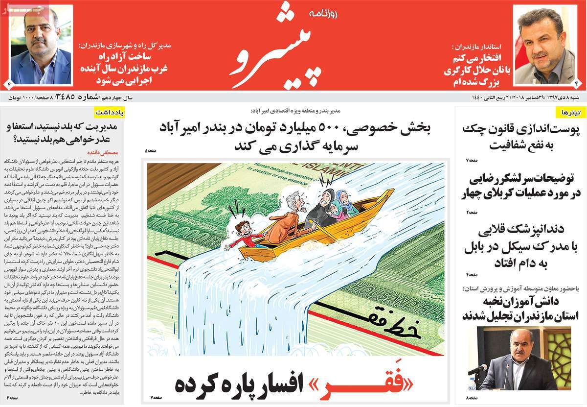 صفحه اول روزنامه های کشوری و استانی؛ شنبه هشتم دی ماه 1397 /تصاویر