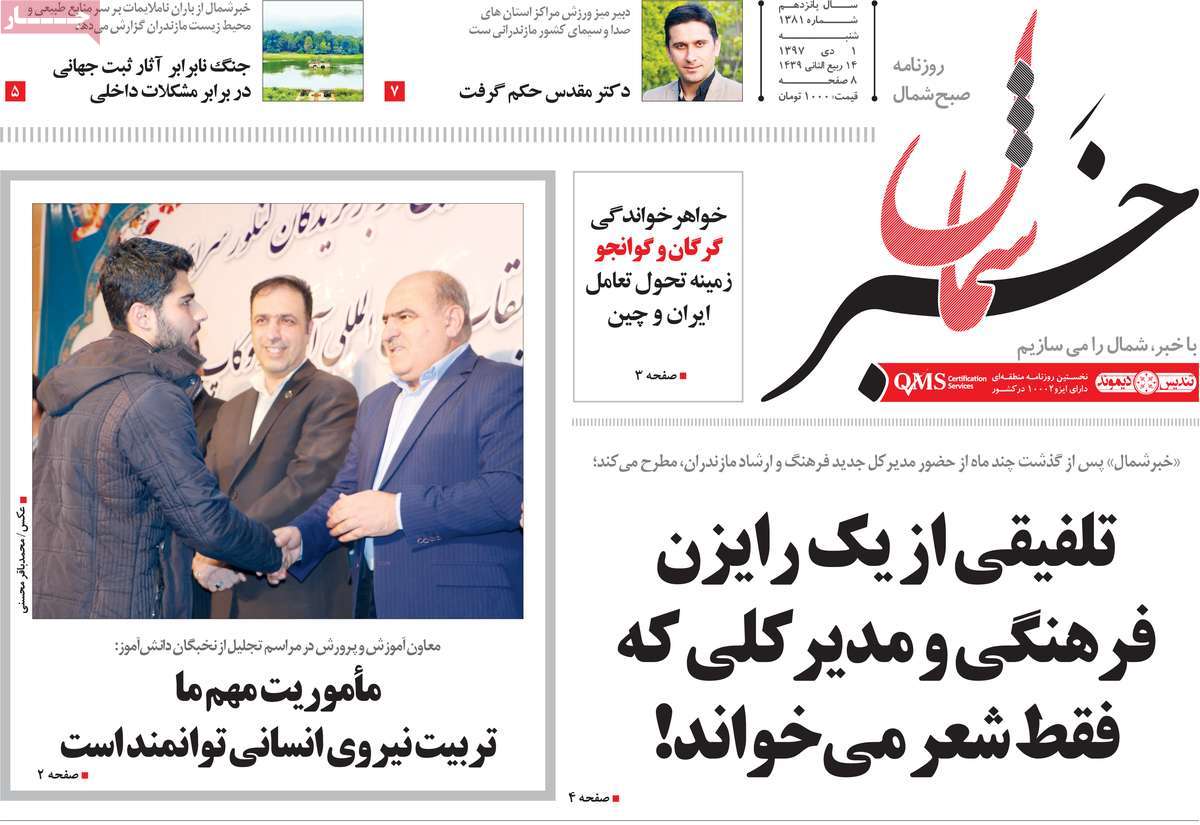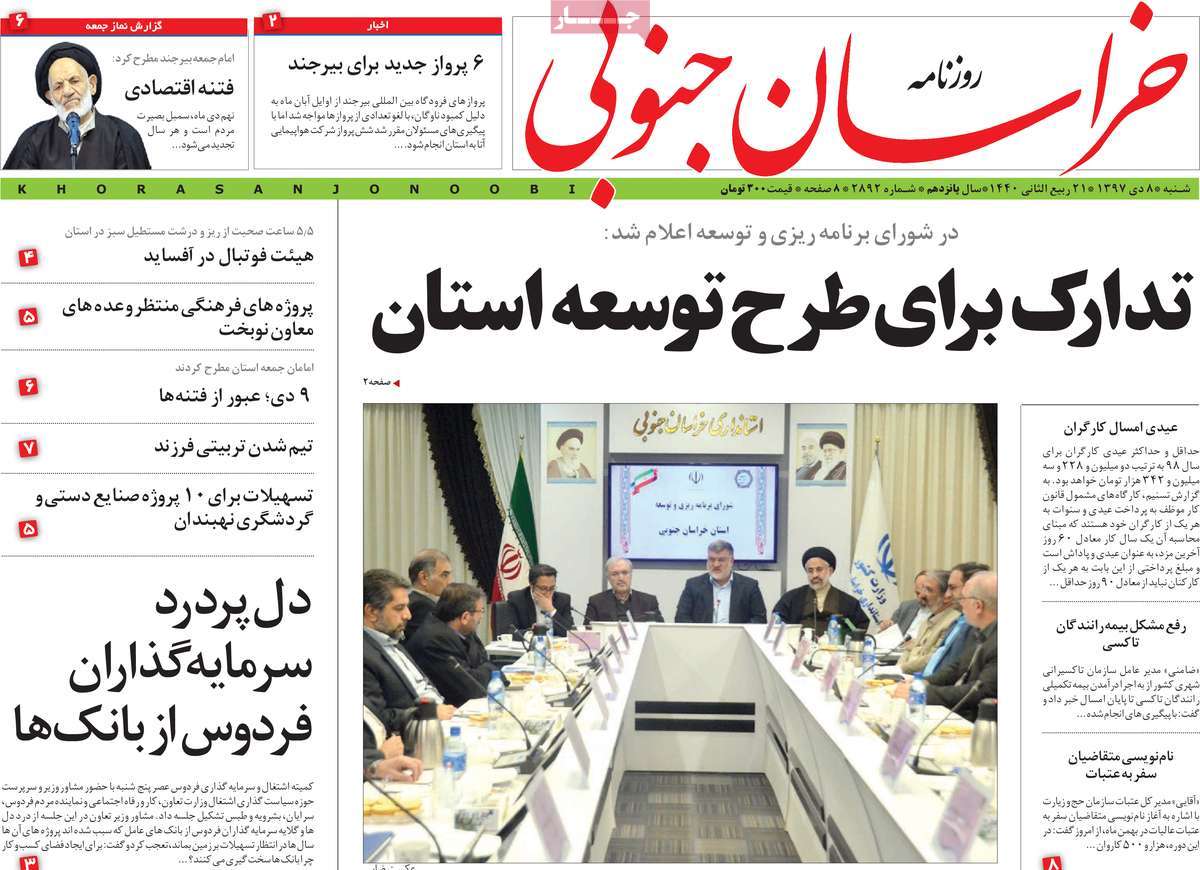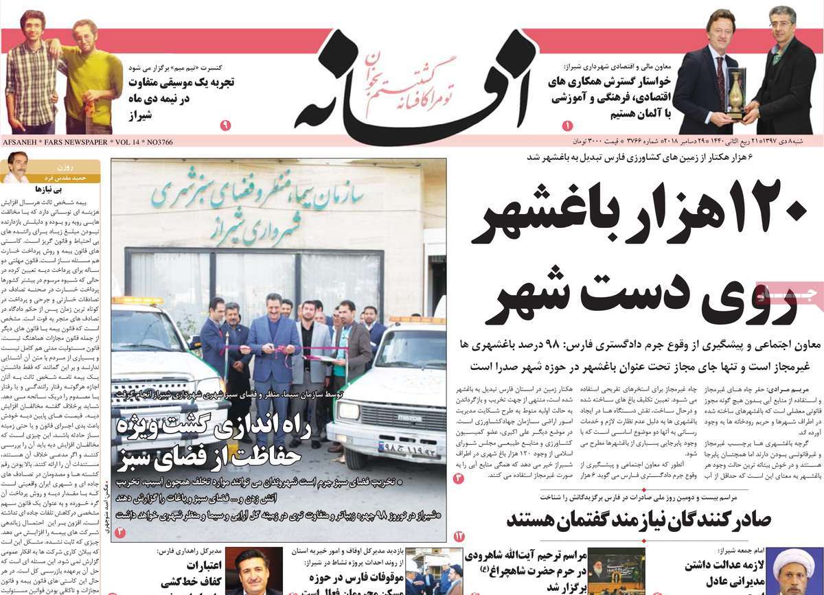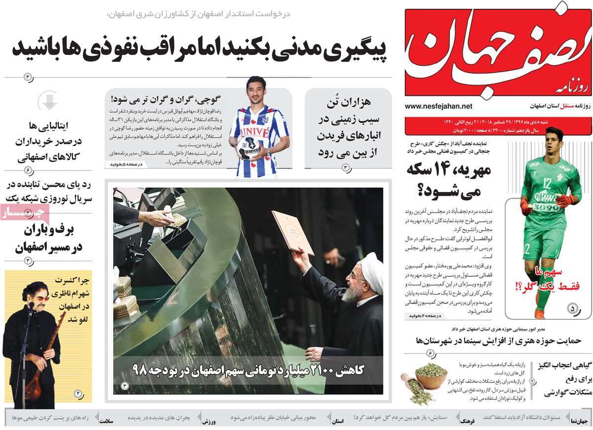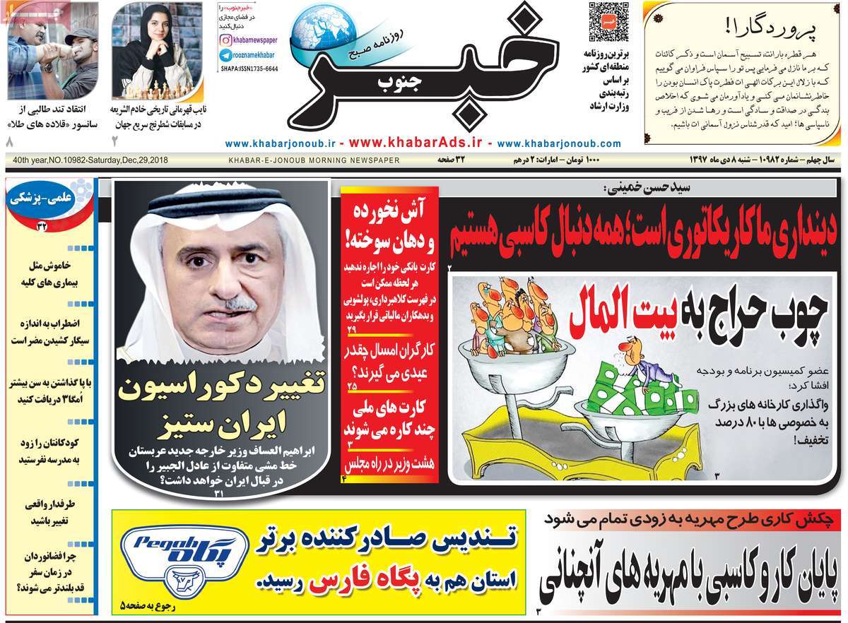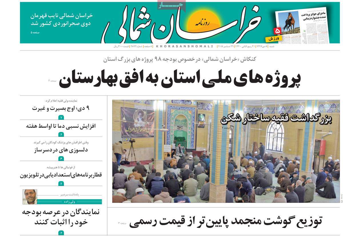 صفحه اول روزنامه های کشوری و استانی؛ شنبه هشتم دی ماه 1397 /تصاویر