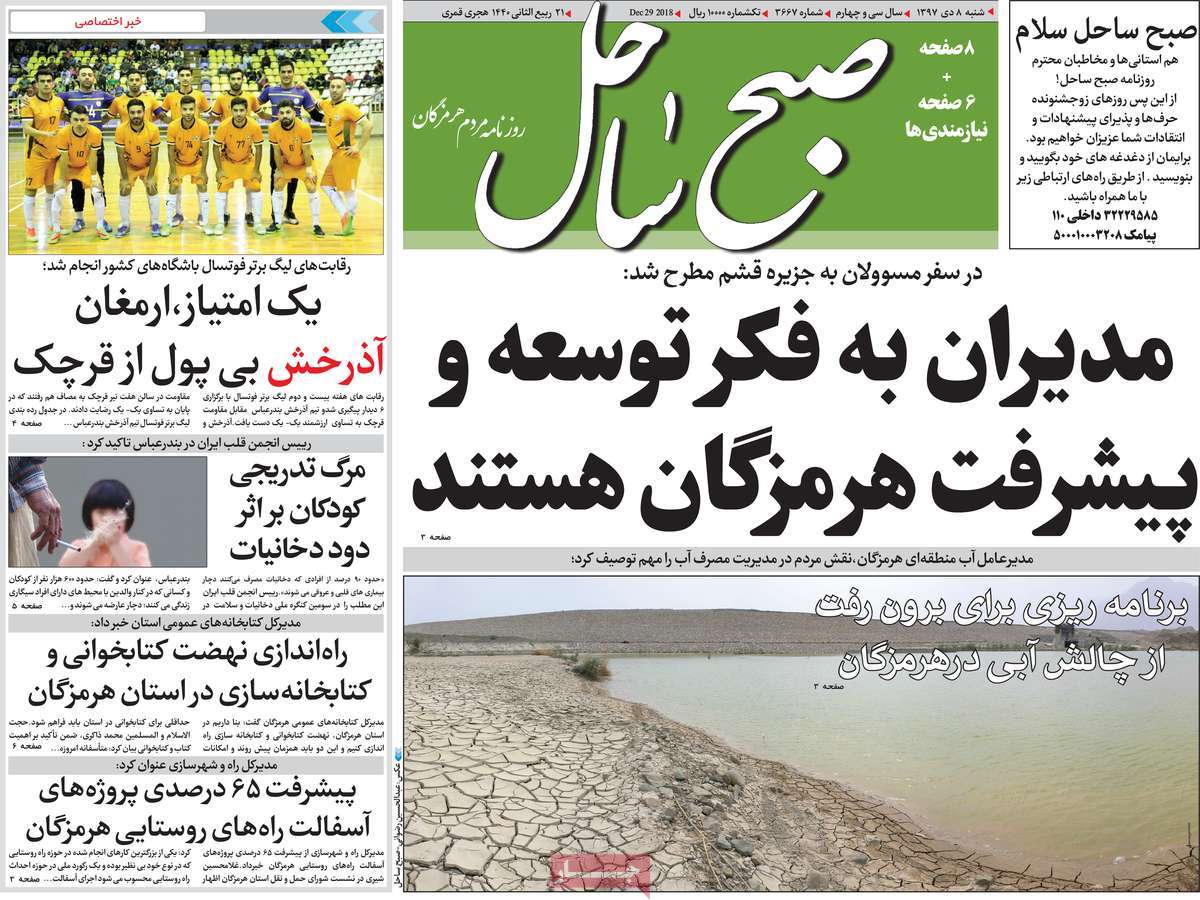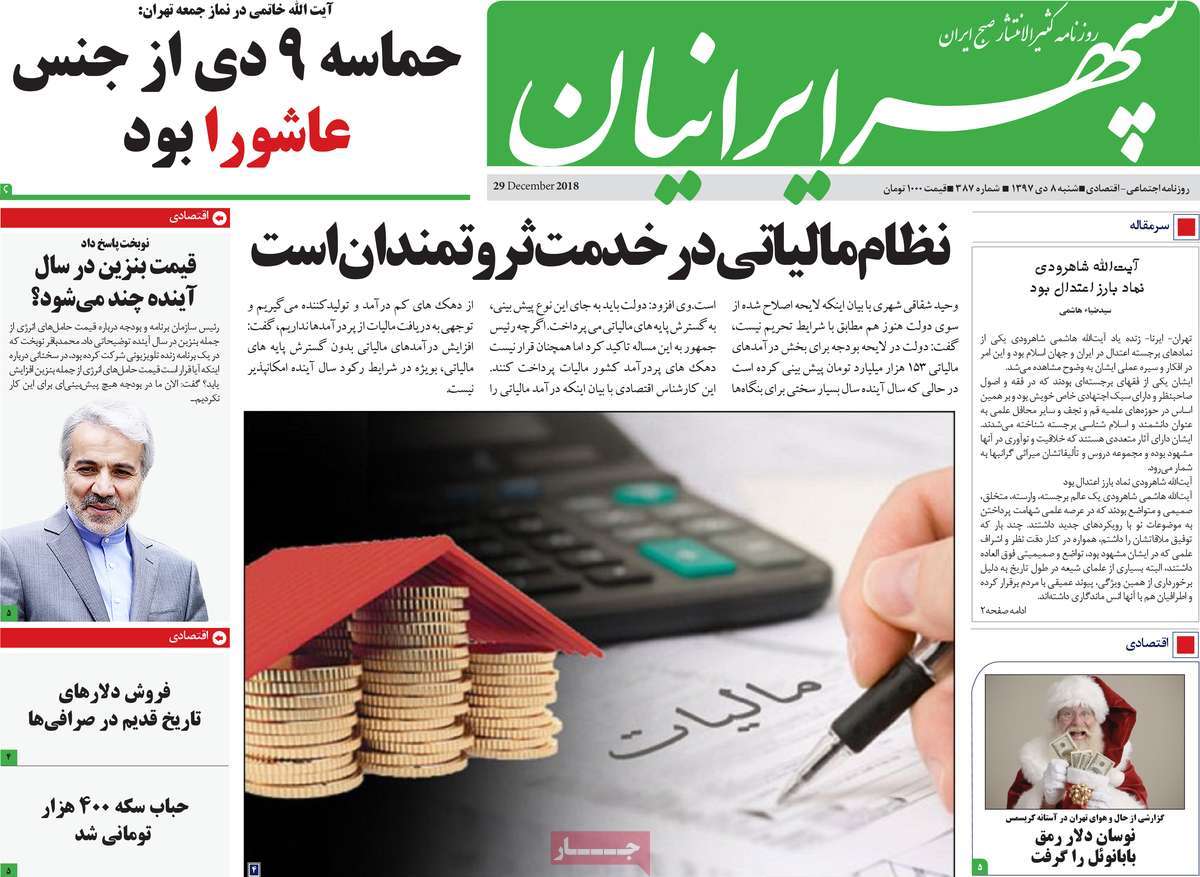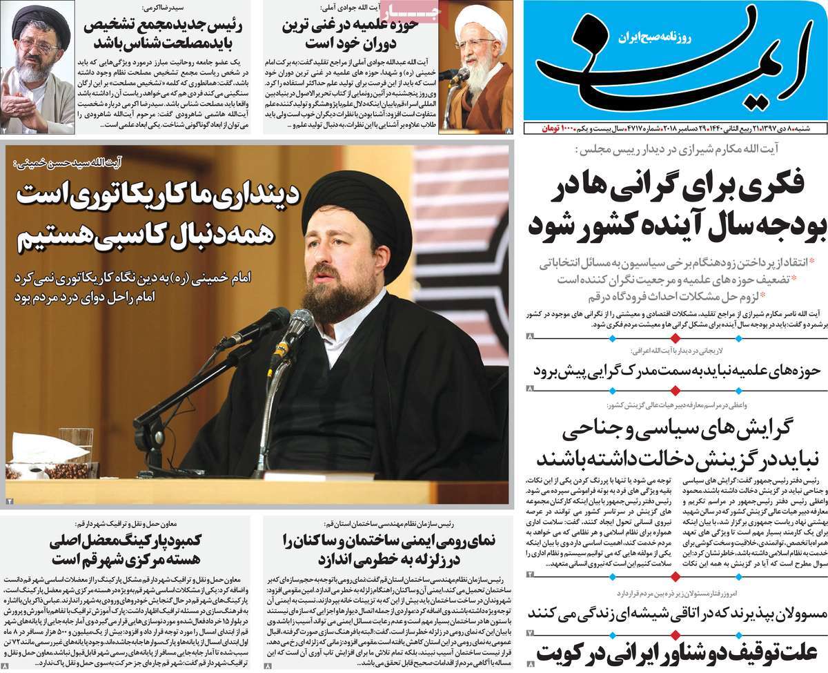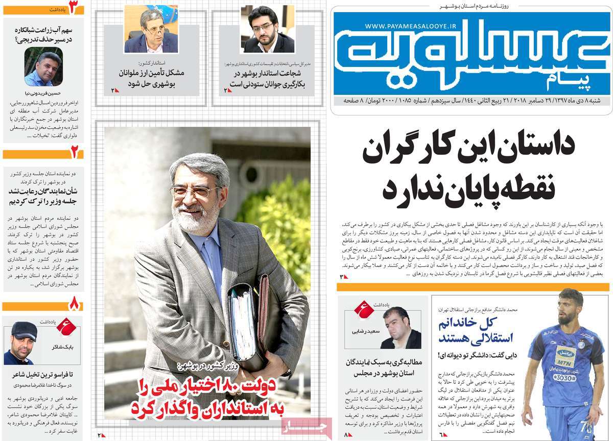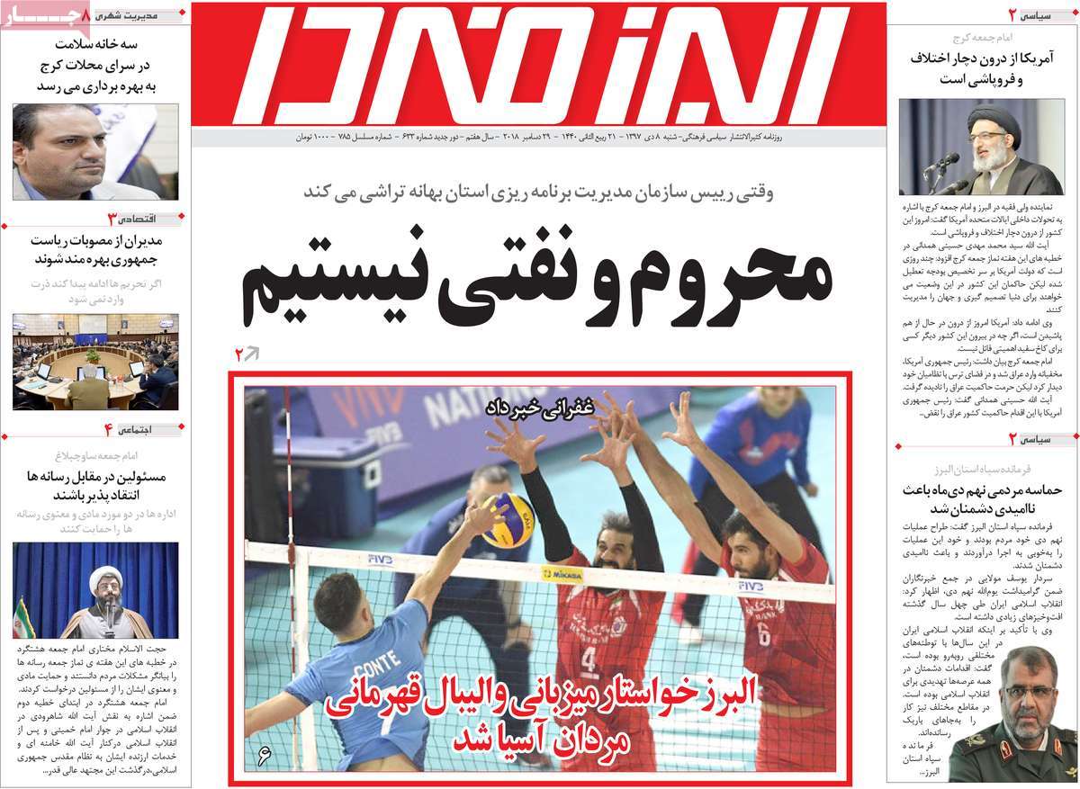 صفحه اول روزنامه های کشوری و استانی؛ شنبه هشتم دی ماه 1397 /تصاویر