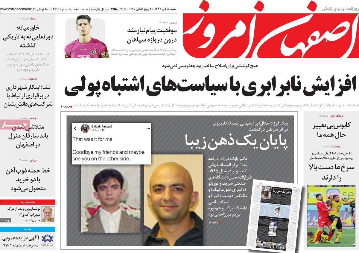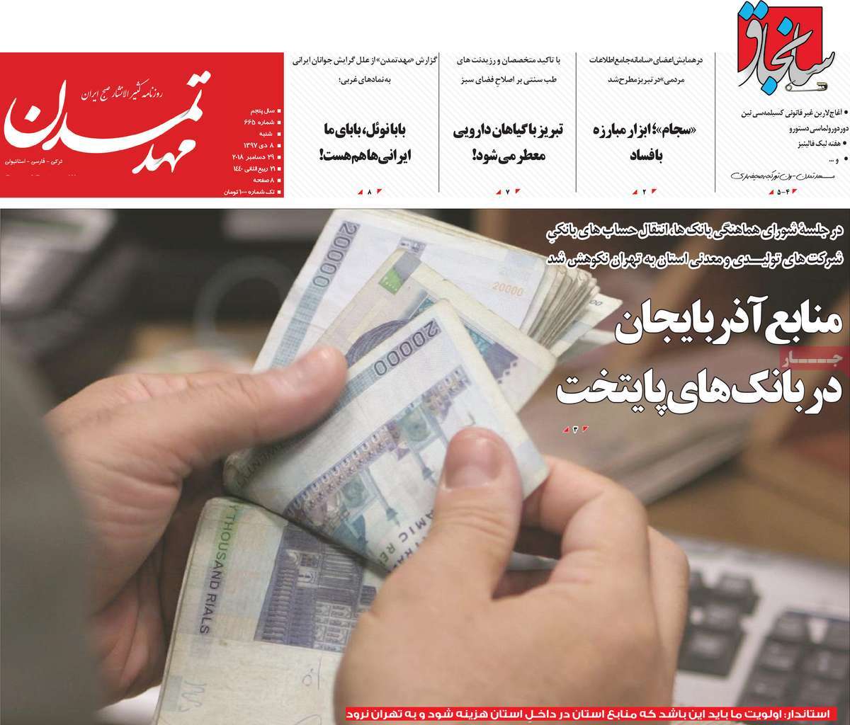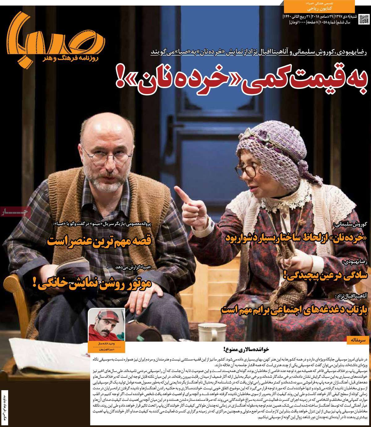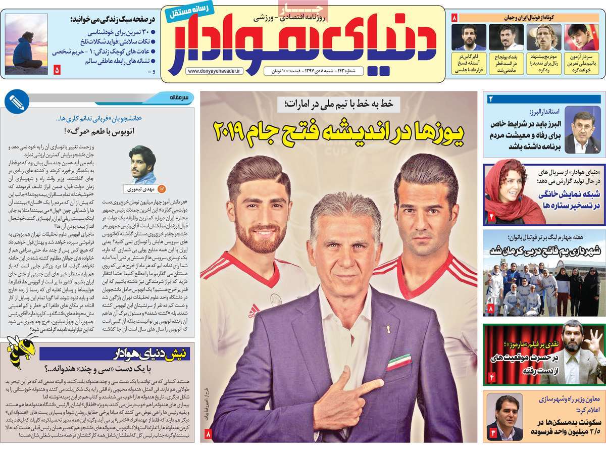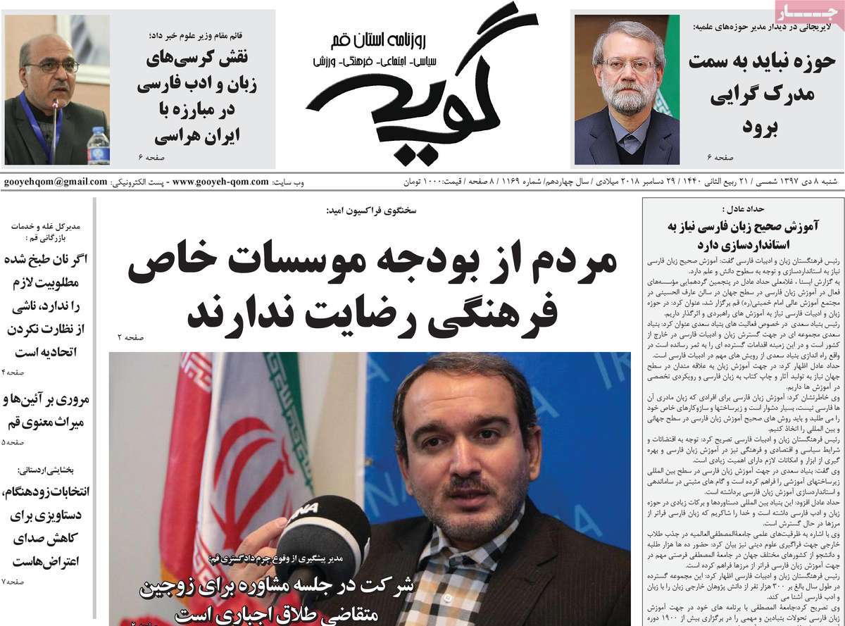 صفحه اول روزنامه های کشوری و استانی؛ شنبه هشتم دی ماه 1397 /تصاویر