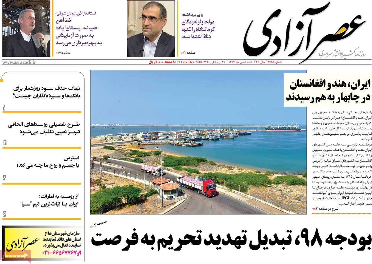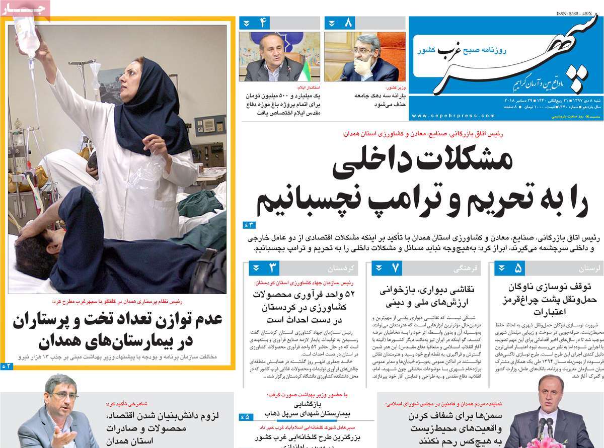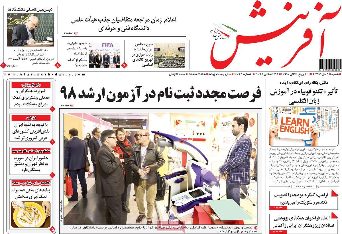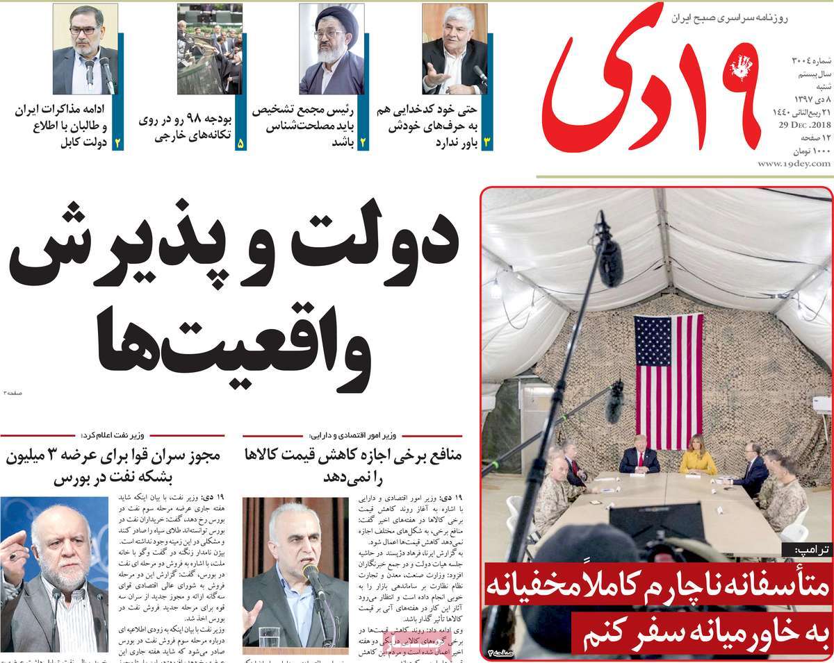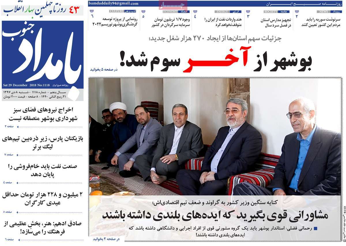 صفحه اول روزنامه های کشوری و استانی؛ شنبه هشتم دی ماه 1397 /تصاویر