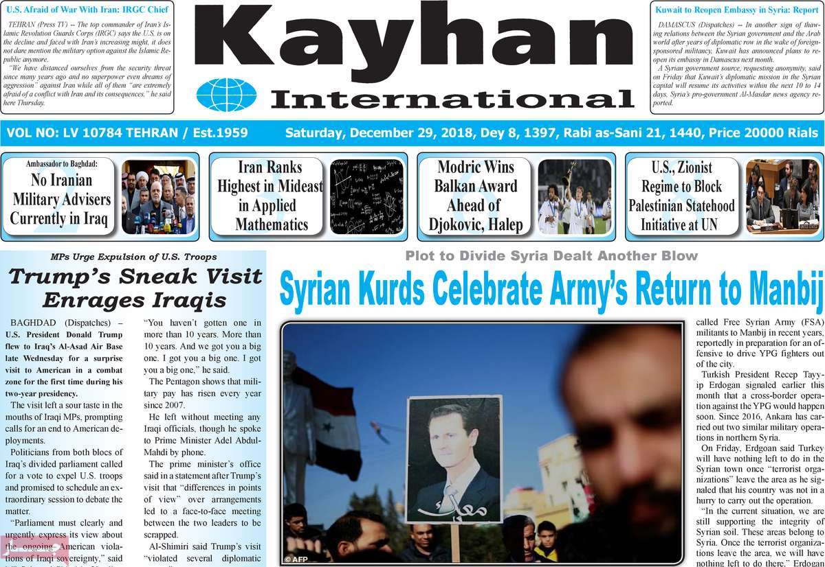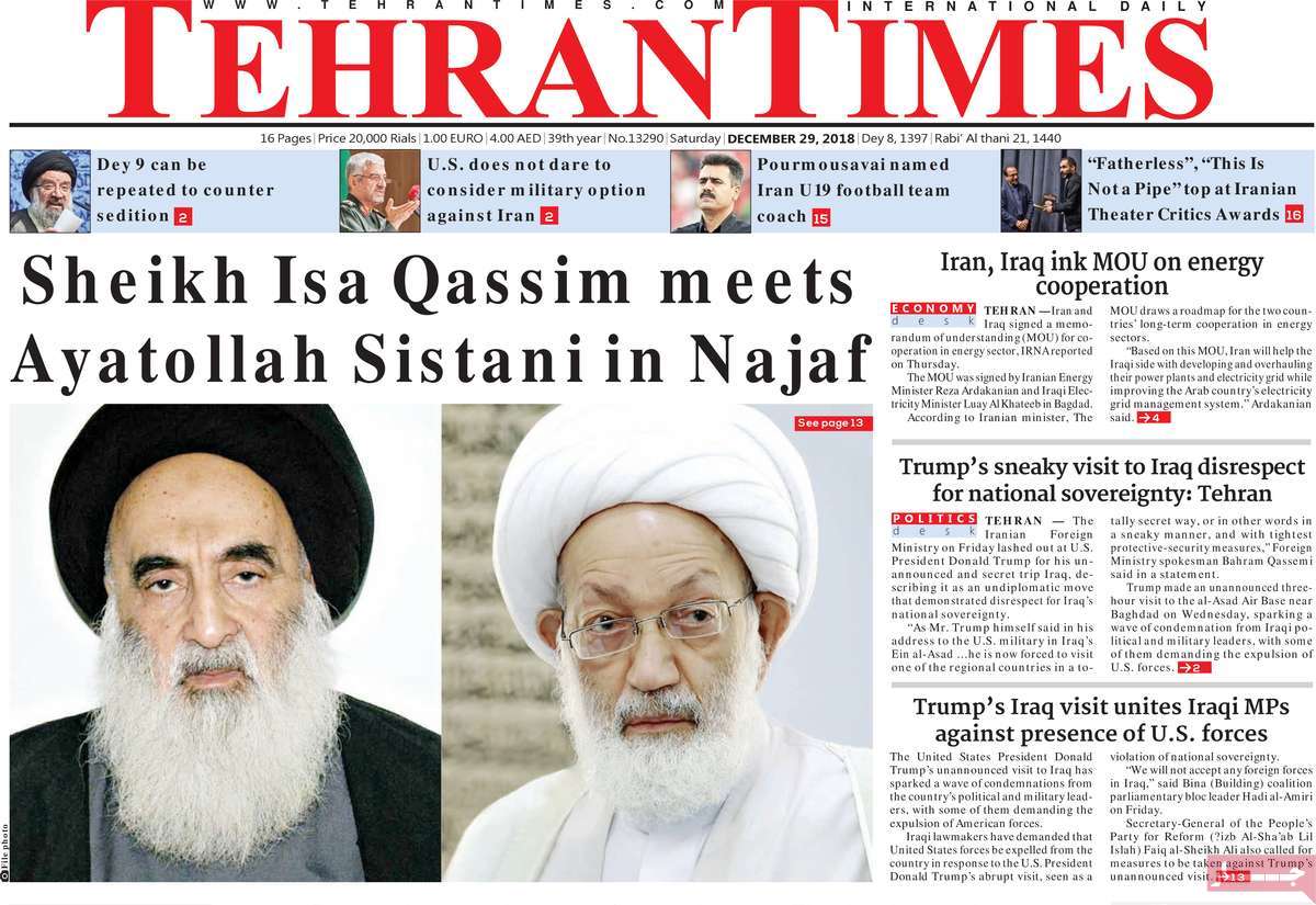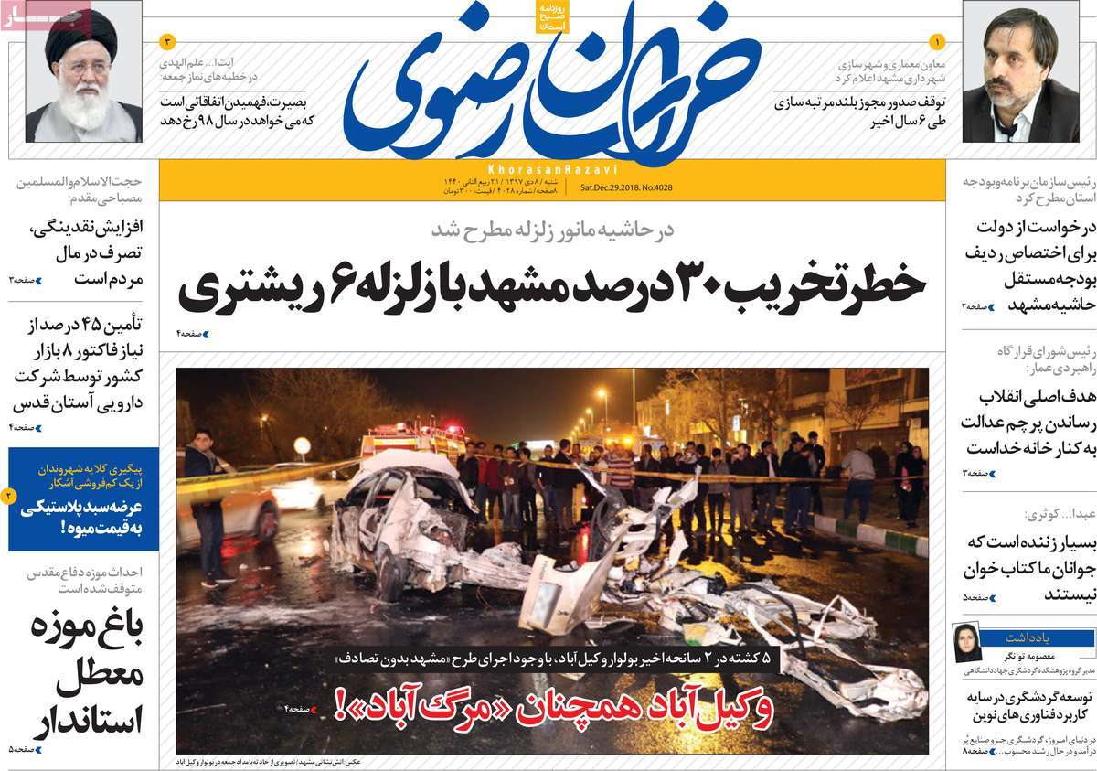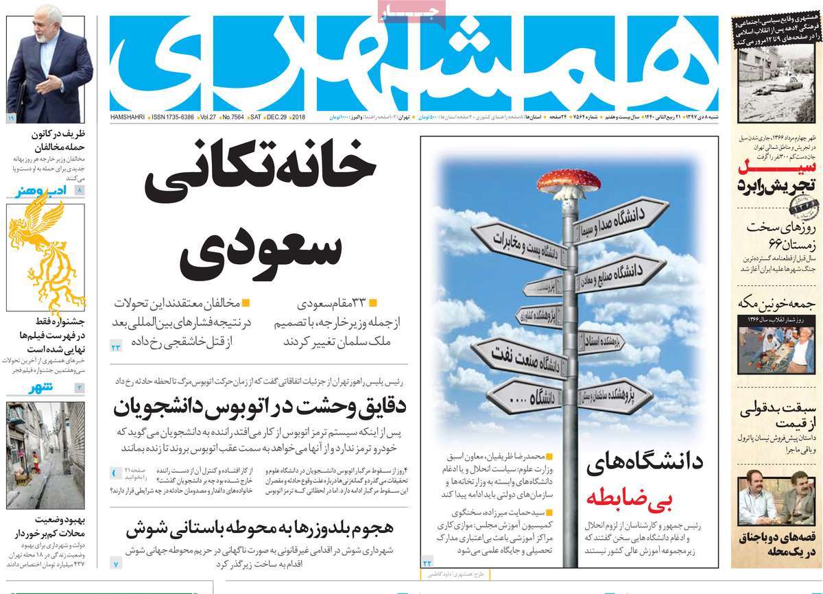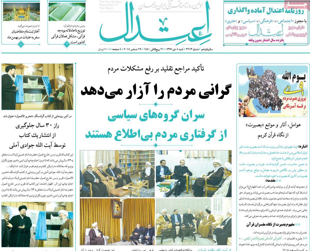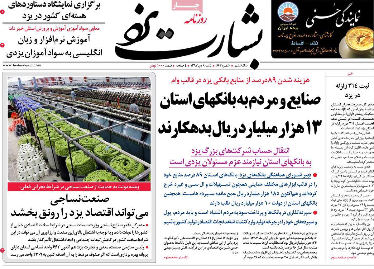 صفحه اول روزنامه های کشوری و استانی؛ شنبه هشتم دی ماه 1397 /تصاویر