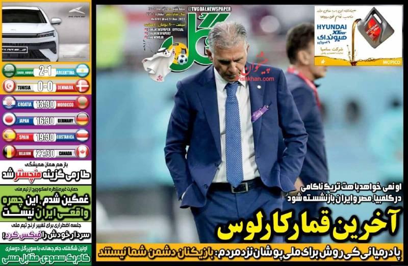 آخرین قمار کارلوس / جلد روزنامه های ورزشی امروز