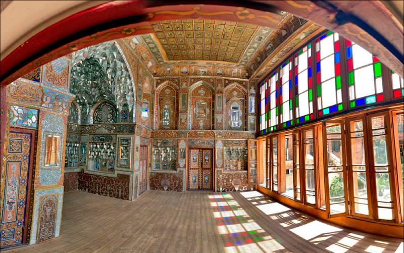 تالار آینه دارای آینه کاری های زیبایی است که در اشکال مختلف مقرنس و قطار بندی به همراه نقاشی های مختلف، در جای جای این اتاق نقش بسته اند و مناظر طبیعی را بر روی گچ و آینه ارائه می کنند. این تالار جلوه باشکوهی دارد و مانند آن را به ندرت در برخی از آثار تاریخی مشاهده می کنیم.