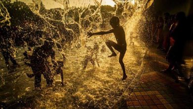 توریسم آنلاین:بچه ها در یک روز گرم در حیدرآباد هند در یک چشمه آب بازی می کنند. ماه می معمولاً…