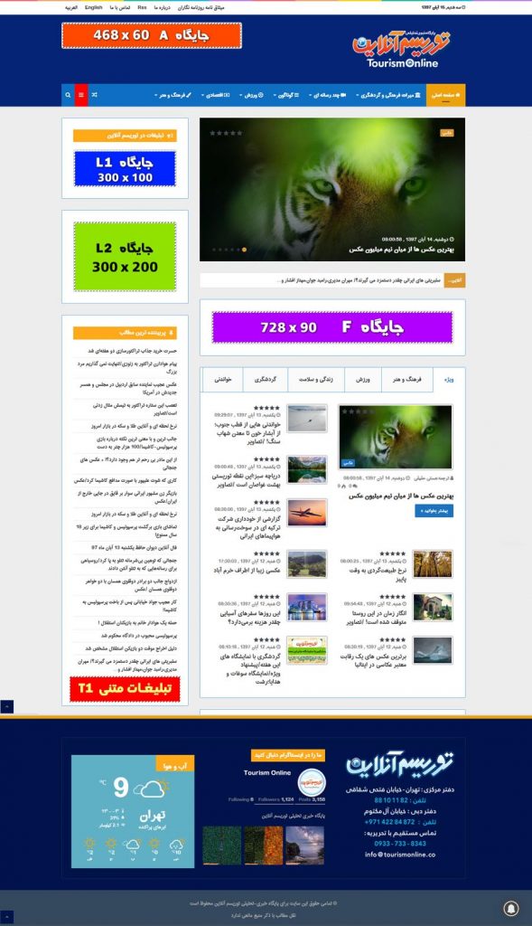 تعرفه و مکانهای تبلیغات در پایگاه خبری-تحلیلی توریسم آنلاین به شرح زیر است: