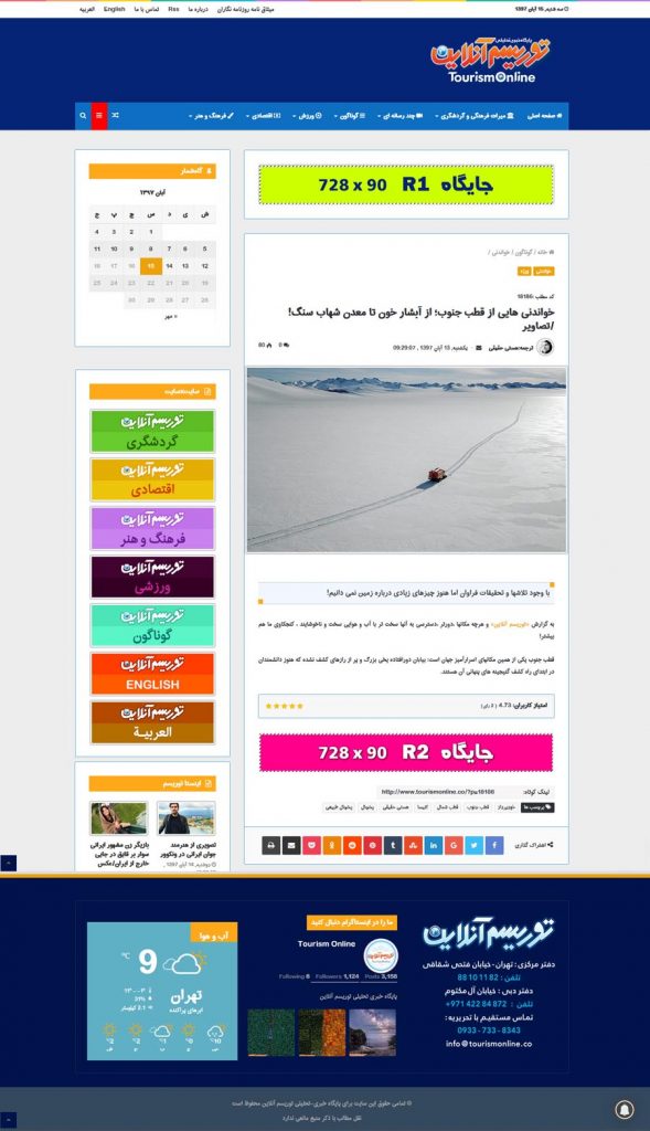 تعرفه تبلیغات در پایگاه خبری-تحلیلی توریسم آنلاین